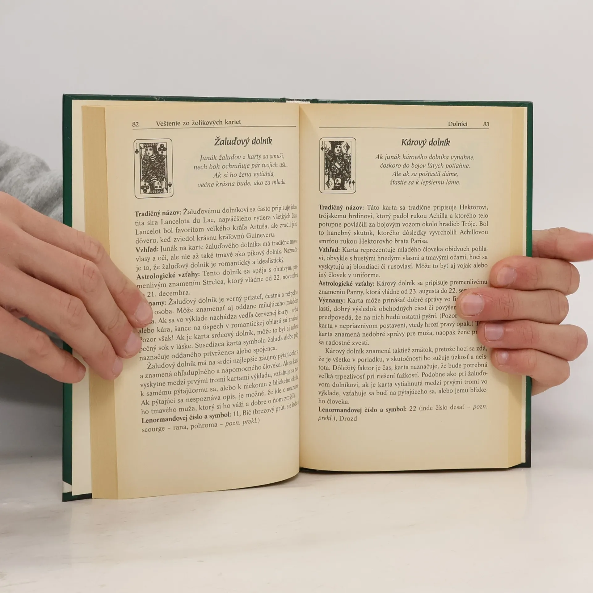 V súčasnosti je najznámejšou metódou veštenia balíček tarotu, kým na obyčajné hracie karty sa akosi zabudlo. Pritom to bol práve pokrový balíček, ktorý sa na predpovedanie budúcnosti používal už stáročia. Teraz môžete aj vy nahliadnuť do svojej budúcnosti. Všetko, čo potrebujete, je obyčajný balíček kariet a táto kniha, ktorá vám bude sprievodcom. Jonathan Dee vám predstaví význam kariet, ako aj ich kľúčové slová, astrologické vzťahy a numerologický význam čísel. Na dôvažok podrobne vysvetľuje dve základné metódy vešteckých systémov, ktoré pracujú s redukovaným balíčkom. Obe metódy boli veľmi populárne, najmä vo Francúzsku. Autor prináša aj názorné schémy niektorých z možných štýlov rozloženia kariet, či už na veštenie pomocou plného, alebo redukovaného balíčka.