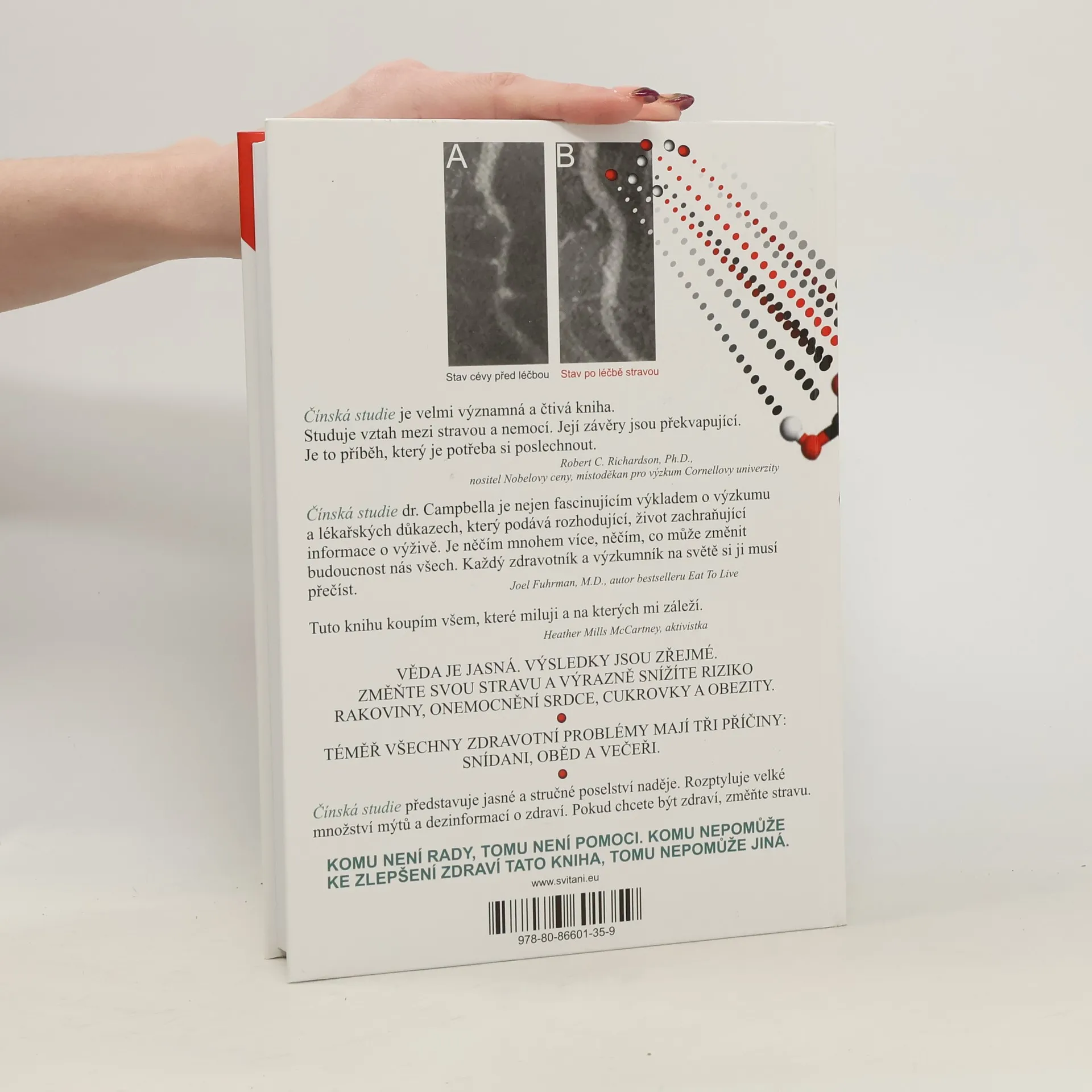 Dílo bylo v USA oceněno jako kniha roku a představuje nejobsáhlejší studii o výživě všech dob. Colin Campbell, profesor biochemie výživy na Cornellově univerzitě, se věnuje výzkumu výživy více než 40 let a je autorem více než 350 výzkumných prací. Jeho teoretické konstrukce byly ověřovány pokusy ve zkumavce, na laboratorních zvířatech a sledováním Američanů. Tato studie, která vznikla ve spolupráci Cornellovy univerzity, Oxfordské univerzity a Čínské akademie preventivního lékařství, zkoumá vztah mezi stravou a zdravím. Od roku 1983 sledovala 6 500 lidí a odhalila 8 000 statisticky významných vztahů. Zkoumaní Číňané z kontinentální Číny byli vybráni kvůli podobnému genetickému pozadí, ustáleným stravovacím návykům a malé migraci. Kniha je určena jak zdravotníkům, tak laickým zájemcům o zdravou výživu a zaměřuje se na praktické informace o různých onemocněních, včetně rakoviny, srdečně- a mozkověcévních nemocí, diabetu, vysokého krevního tlaku, artritidy, Alzheimerovy nemoci a osteoporózy. Je to významné a čtivé dílo, které přináší překvapivé závěry o vztahu mezi stravou a nemocí. Příběh, který stojí za to si poslechnout.