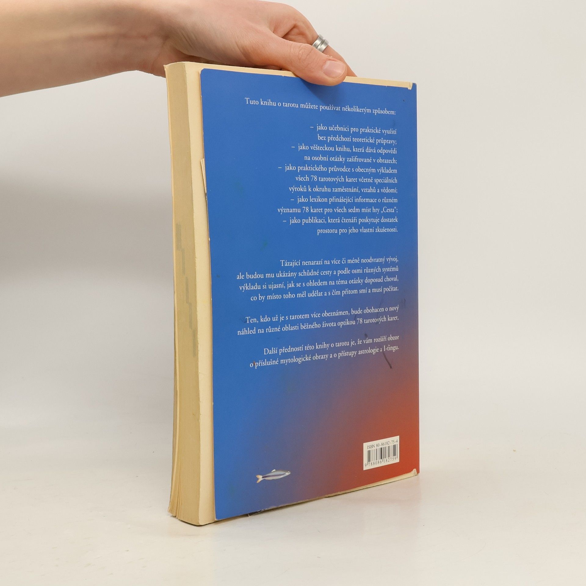 Tuto knihu o tarotu můžete používat několikerým způsobem: jako učebnici pro praktické využitíbez předchozí teoretické průpravy jako věšteckou knihu, která dává odpovědina osobní otázky zašifrované v obrazech- jako praktického průvodce s obecným výkladem všech 78 tarotových karet včetně speciálních výroků k okruhu zaměstnání, vztahů a vědomí; jako lexikon přinášející informace o různémvýznamu 78 karet pro všech sedm míst hry "Cesta"; jako publikaci, která čtenáři poskytuje dostatek prostoru pro jeho vlastní zkušenosti. Tázající nenarazí na více či méně neodvratný vývoj, ale budou mu ukázány schůdné cesty a podle osmi různých systémů výkladu si ujasní, jak se s ohledem na téma otázky doposud choval, co by místo toho měl udělat a s čím přitom smí a musí počítat. Ten, kdo už je s tarotem více obeznámen, bude obohacen o nový náhled na různé oblasti běžného života optikou 78 tarotových karet. Další předností této knihy o tarotu je, že vám rozšíří obzor o příslušné mytologické obrazy a o přístupy astrologie a I-ťingu.