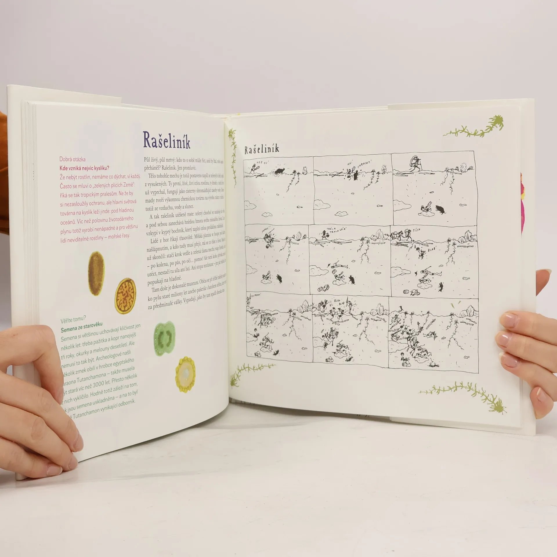 Tato kniha je určena všem dětem, které se nespokojí s jednoduchým vysvětlením a často kladou rodičům otázku proč. Proč na akátu žijí mravenci, proč kopřiva žahá, proč cibule štípe do očí a proč musí mít kytky kořeny v zemi? Jaká byla první rostlina na světě, kdo vypěstoval sladký hrášek a je pravda, že nejdražší kávu na světě kakají cibetky? Rostlinopis v podání Jiřího Dvořáka a Alžběty Skálové mohou také použít učitelé, když se děti při vyučování přírodopisu nudí: příroda je plná malých napínavých dobrodružství i hrdinných příběhů, hádanek a neuvěřitelných tajemství. A v neposlední řadě je to i knížka rodinná: malým dětem bude stačit hádanka nebo veršovánka, větší děti se začtou do příběhu s dobrým koncem a dospělí se budou divit, kolik toho nevěděli.