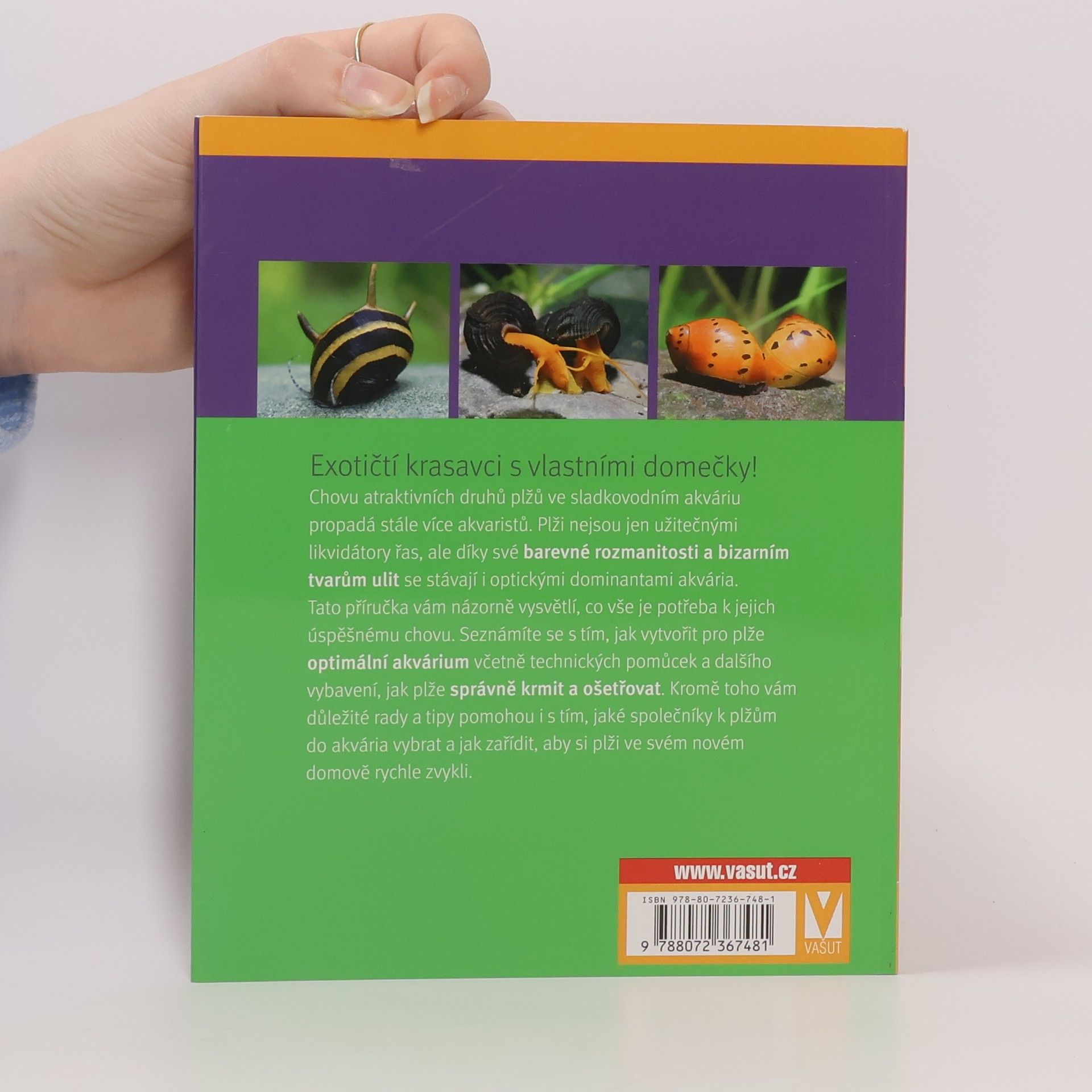Exotičtí krasavci s vlastními domečky! Chovu atraktivních druhů plžů ve sladkovodním akváriu propadá stále více akvaristů. Plži nejsou jen užitečnými likvidátory řas, ale díky své barevné rozmanitosti a bizarním tvarům ulit se stávají i optickými dominantami akvária. Tato příručka vám názorně vysvětlí, co vše je potřeba k jejich úspěšnému chovu. Seznámíte se s tím, jak vytvořit pro plže optimální akvárium včetně technických pomůcek a dalšího vybavení, jak plže správně krmit a ošetřovat. Kromě toho vám důležité rady a tipy pomohou i s tím, jaké společníky k plžům do akvária vybrat a jak zařídit, aby si plži ve svém novém domově rychle zvykli.