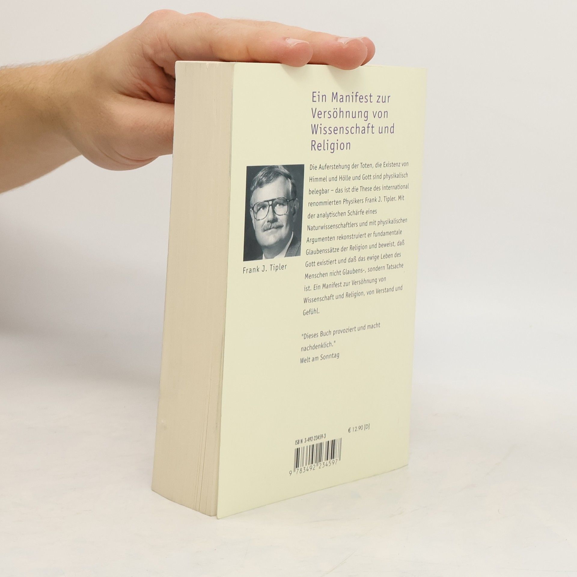 Der amerikanische Physiker Professor F. J. Tipler unternimmt den Versuch, die Existenz Gottes und die Auferstehung nach dem Tode mit den Mitteln der Naturwissenschaft zu beweisen. „Zu Beginn meiner Laufbahn als Physiker hätte ich mir nie träumen lassen, daß ich eines Tages als Physiker schreiben würde, daß es den Himmel gibt und daß jeden, und zwar jeden einzelnen von uns, ein Leben nach dem Tode erwartet. Und doch, hier stehe ich und schreibe Dinge, die mein früheres Ich als wissenschaftlichen Unsinn abgetan hätte.“