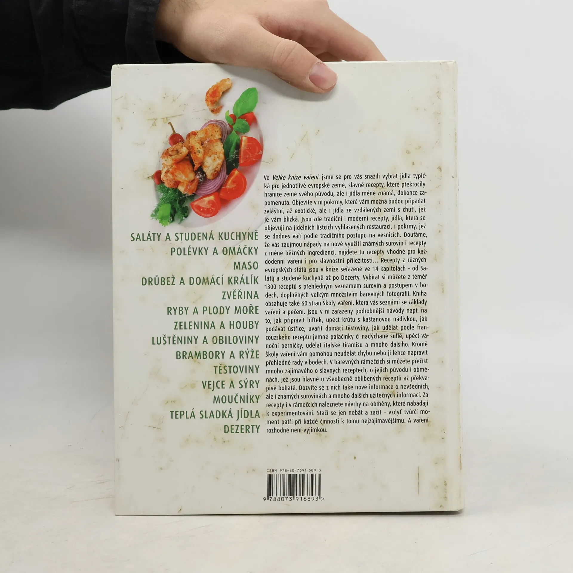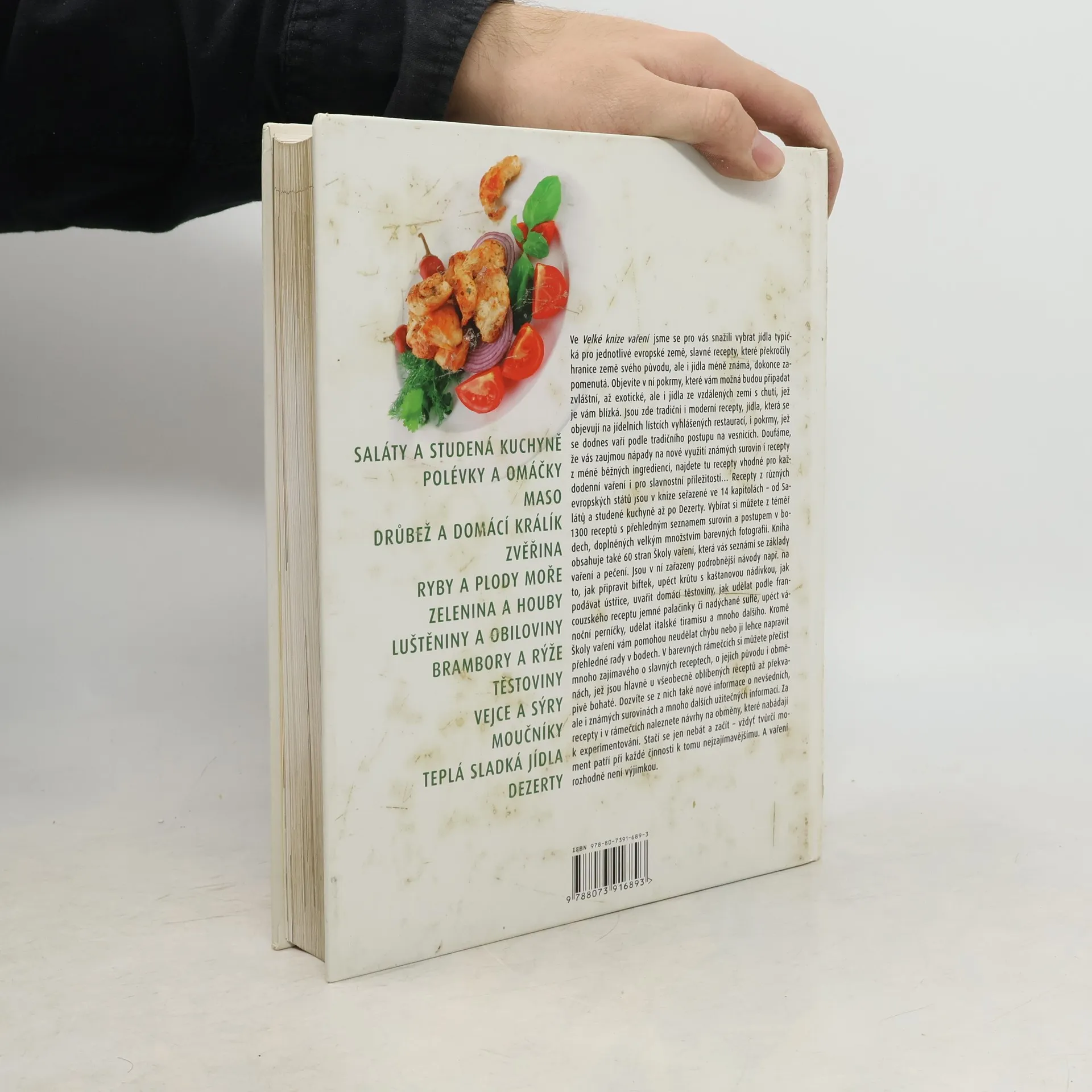 Ve Velké knize vaření jsme se pro vás snažili vybrat jídla typická pro jednotlivé evropské země, slavné recepty, které překročily hranice země svého původu, ale i jídla méně známá, dokonce zapomenutá. Objevíte v ní pokrmy, které vám možná budou připadat zvláštní, až exotické, ale i jídla ze vzdálených zemí s chutí, jež je vám blízká. Jsou zde tradiční i moderní recepty, jídla, která se objevují na jídelních lístcích vyhlášených restaurací, i pokrmy, jež se dodnes vaří podle tradičního postupu na venkově. Doufáme, že vás zaujmou nápady na nové využití známých surovin i recepty z méně běžných ingediencí, najdete tu recepty vhodné pro každodenní vaření i pro slavnostní příležitosti...Jednotlivé recepty jsou popsány krok za krokem. Saláty a studená kuchyně / Polévky a omáčky / Maso / Drůbež a domácí králík / Zvěřiny / Ryby a plody moře / Zelenina a houby / Luštěniny a obiloviny / Brambory a rýže / Těstoviny / Vejce a sýry / Moučníky / Teplá sladká jídla / Dezerty