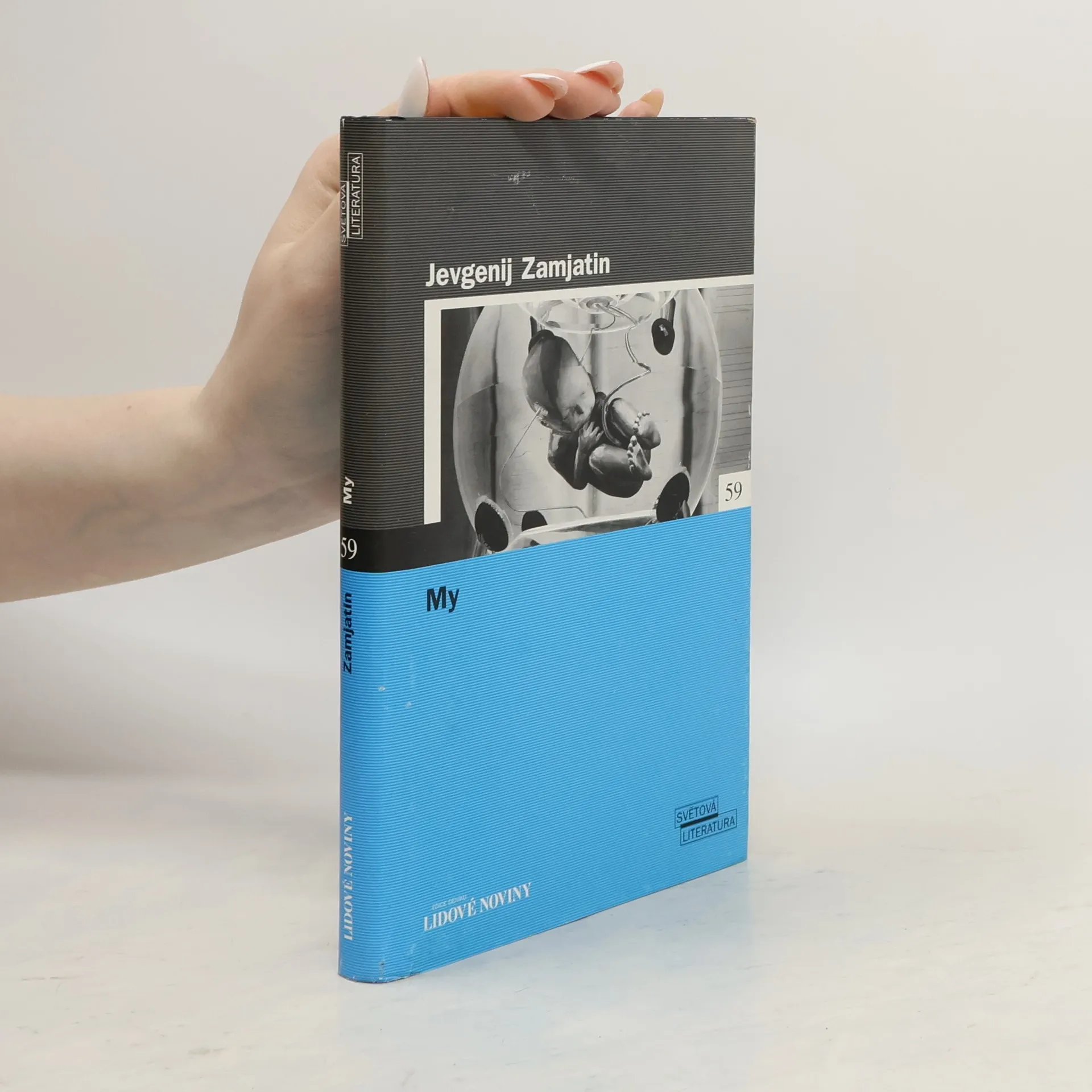 Své stěžejní dílo, románovou antiutopii My, napsal Zamjatin v roce 1920. V letech 1924/25 se objevila v překladech do češtiny, angličtiny a francouzštiny. V Rusku byla vydána až v letech přestavby, v roce 1987. Jádrem díla je život v „Jednotném státu“ vzniklém někdy ve třetím tisíciletí po „dvousetleté válce“. Lidé v této době už netrpí bídou, ztratili však jména a stali se pouhými „čísly“, lidmi – šroubky. Ženy jsou v pojmenovány samohláskami, např. I – 330, a muži souhláskami, např. hlavní hrdina je D – 503. Život těchto lidí je organizován a přísně střežen Úřadem Strážců. Všichni lidé žijí v prosklených domech, takže nemohou nic skrýt. Vstávají každý den všichni ve stejnou minutu, stejně odchází do práce a stejně jdou i na odpočinek. Na každé sousto při jídle mají předepsaných padesát skousnutí. Na dítě musí mít povolení, jinak jsou popraveni. Vůle kolektivu zde pod totalitním diktátem Dobroditele zcela vytlačuje svobodu lidského myšlení.... celý text