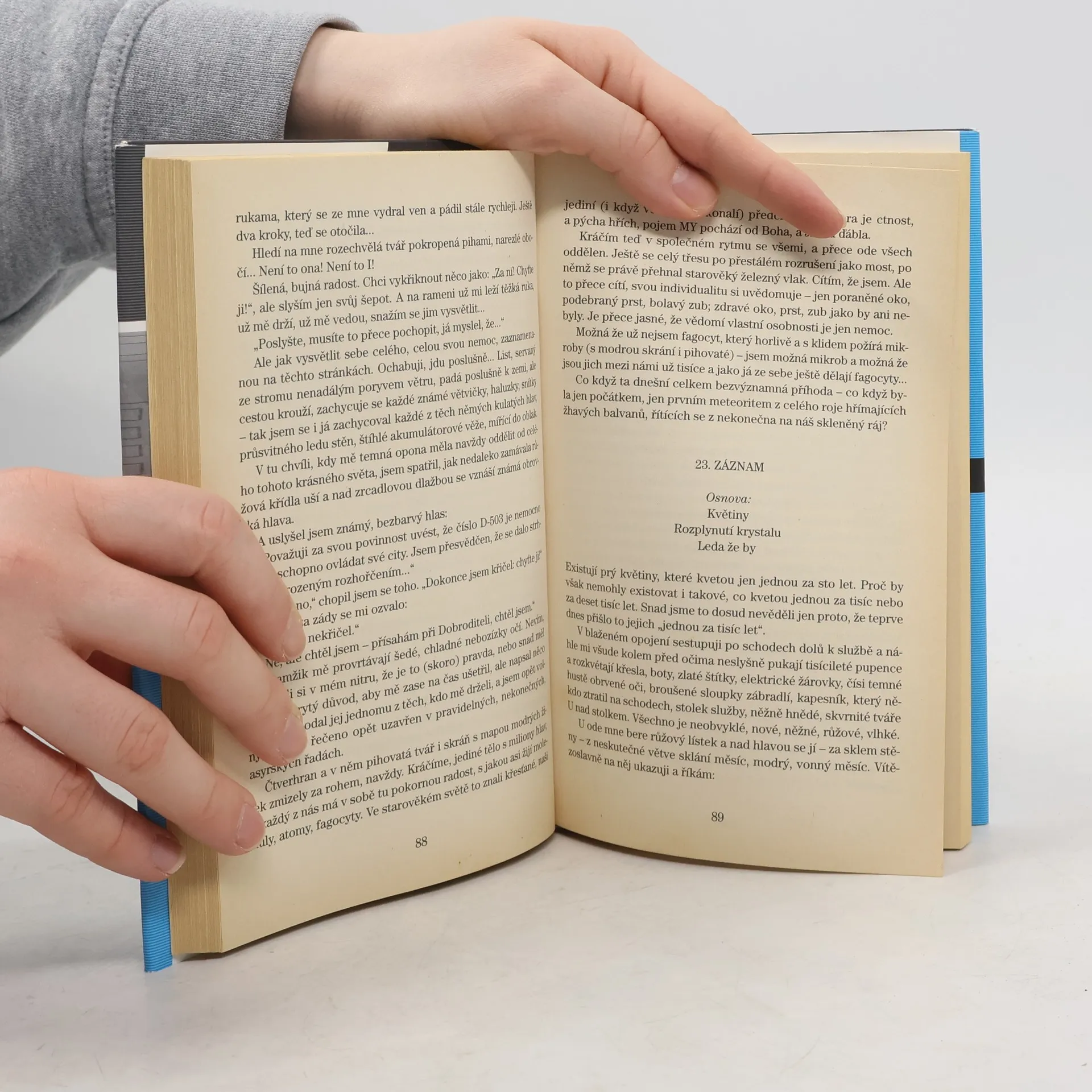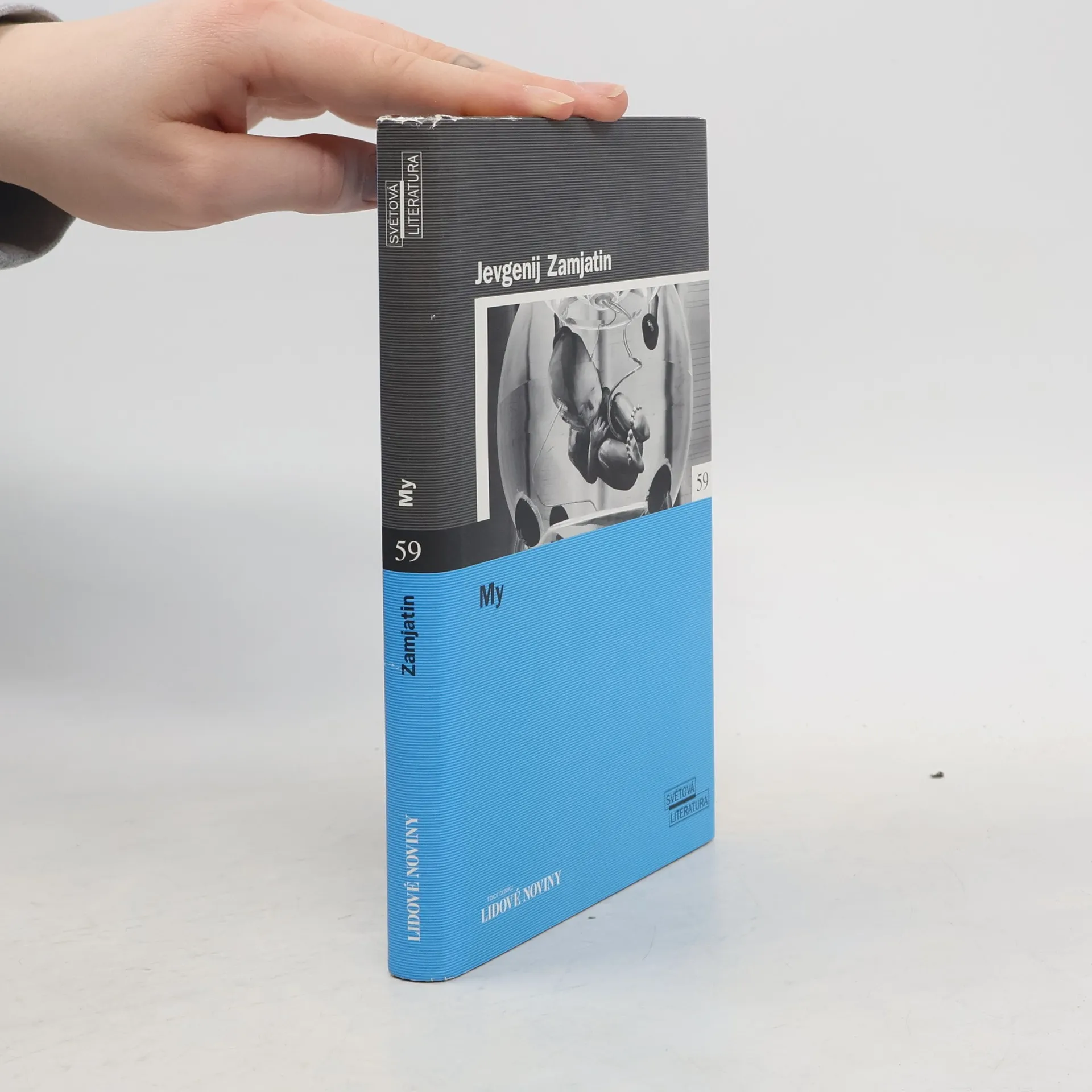 Své stěžejní dílo, románovou antiutopii My, napsal Zamjatin v roce 1920. V letech 1924/25 se objevila v překladech do češtiny, angličtiny a francouzštiny. V Rusku byla vydána až v letech přestavby, v roce 1987. Jádrem díla je život v „Jednotném státu“ vzniklém někdy ve třetím tisíciletí po „dvousetleté válce“. Lidé v této době už netrpí bídou, ztratili však jména a stali se pouhými „čísly“, lidmi – šroubky. Ženy jsou v pojmenovány samohláskami, např. I – 330, a muži souhláskami, např. hlavní hrdina je D – 503. Život těchto lidí je organizován a přísně střežen Úřadem Strážců. Všichni lidé žijí v prosklených domech, takže nemohou nic skrýt. Vstávají každý den všichni ve stejnou minutu, stejně odchází do práce a stejně jdou i na odpočinek. Na každé sousto při jídle mají předepsaných padesát skousnutí. Na dítě musí mít povolení, jinak jsou popraveni. Vůle kolektivu zde pod totalitním diktátem Dobroditele zcela vytlačuje svobodu lidského myšlení.... celý text