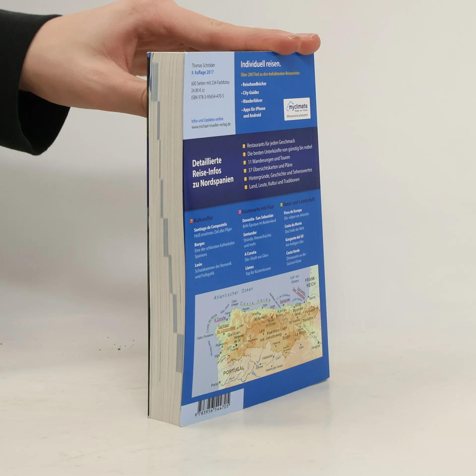 Von den sanften Buchten des Baskenlandes bis zu den tiefen Rías Galiciens - das „grüne Spanien“ ist anders, als Sie sich die Region vorstellen! Hier wird ein landschaftlich wie auch kulturell ausgesprochen vielschichtiges Gebiet vorgestellt, in dem noch heute drei verschiedene Sprachen gesprochen werden. Dabei sind sowohl der berühmte, durchs Landesinnere führende Jakobsweg als auch die landschaftlich reizvolle Küstenroute von höchstem Interesse. In Thomas Schröders Buch, das Spanien zwischen Navarra und Galicien beschreibt, gibt es Entdeckungstipps für jeden Geschmack: elegante Seebäder an der Küste, Naturparks im Hochgebirge, uralte Kirchlein am Jakobsweg, steinzeitliche Zeichnungen in Tropfsteinhöhlen. Und natürlich sämtliche reisepraktischen Informationen: Übernachten im familiären Hostal und im Burgparador, Reisen mit Auto, Mietwagen, Bus und der längsten Schmalspurbahn Europas, Apfelweinbars in Asturien und Austernstrände in Vigo, das Nachtleben der Großstädte, Fiestas und Ferias und und und ...