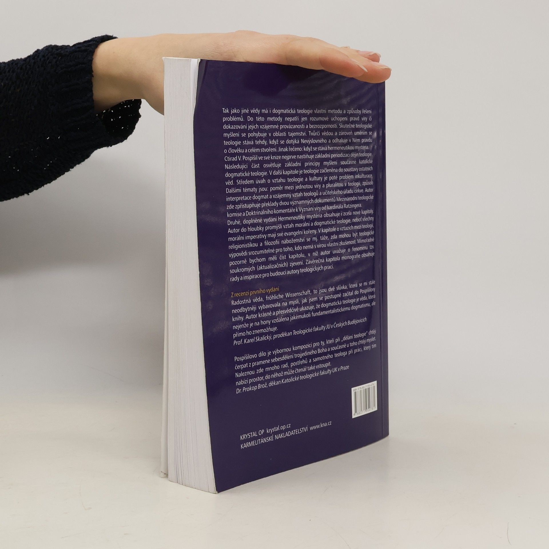 Dogmatická teologie, jako každá věda, má specifickou metodu a přístupy k řešení problémů, které přesahují pouhé rozumové uchopení pravd víry. Skutečné teologické myšlení se pohybuje v oblasti tajemství a stává se uměním, když odhaluje pravdu o člověku a stvoření. Ctirad V. Pospíšil ve své knize zkoumá periodizaci dějin teologie a základní principy současné katolické dogmatické teologie. Teologie je zasazena do širšího kontextu ostatních věd, přičemž se zaměřuje na problém inkulturace, vztah mezi jednotou víry a pluralitou v teologii, interpretaci dogmat a vztah teologů k učitelskému úřadu církve. Autor zpřístupňuje překlady dvou významných dokumentů Mezinárodní teologické komise a komentáře k Vyznání víry od kardinála Ratzingera. Druhé, doplněné vydání obsahuje nové kapitoly, které se hlouběji zabývají vztahem morální a dogmatické teologie, přičemž všechny morální imperativy mají evangelní kořeny. Autor se také ptá, zda mohou být teologické výpovědi srozumitelné pro ty, kteří nemají osobní zkušenost s vírou. Zvláštní pozornost si zaslouží úvahy o fenoménu soukromých zjevení a závěrečná kapitola nabízí rady pro budoucí autory teologických prací.