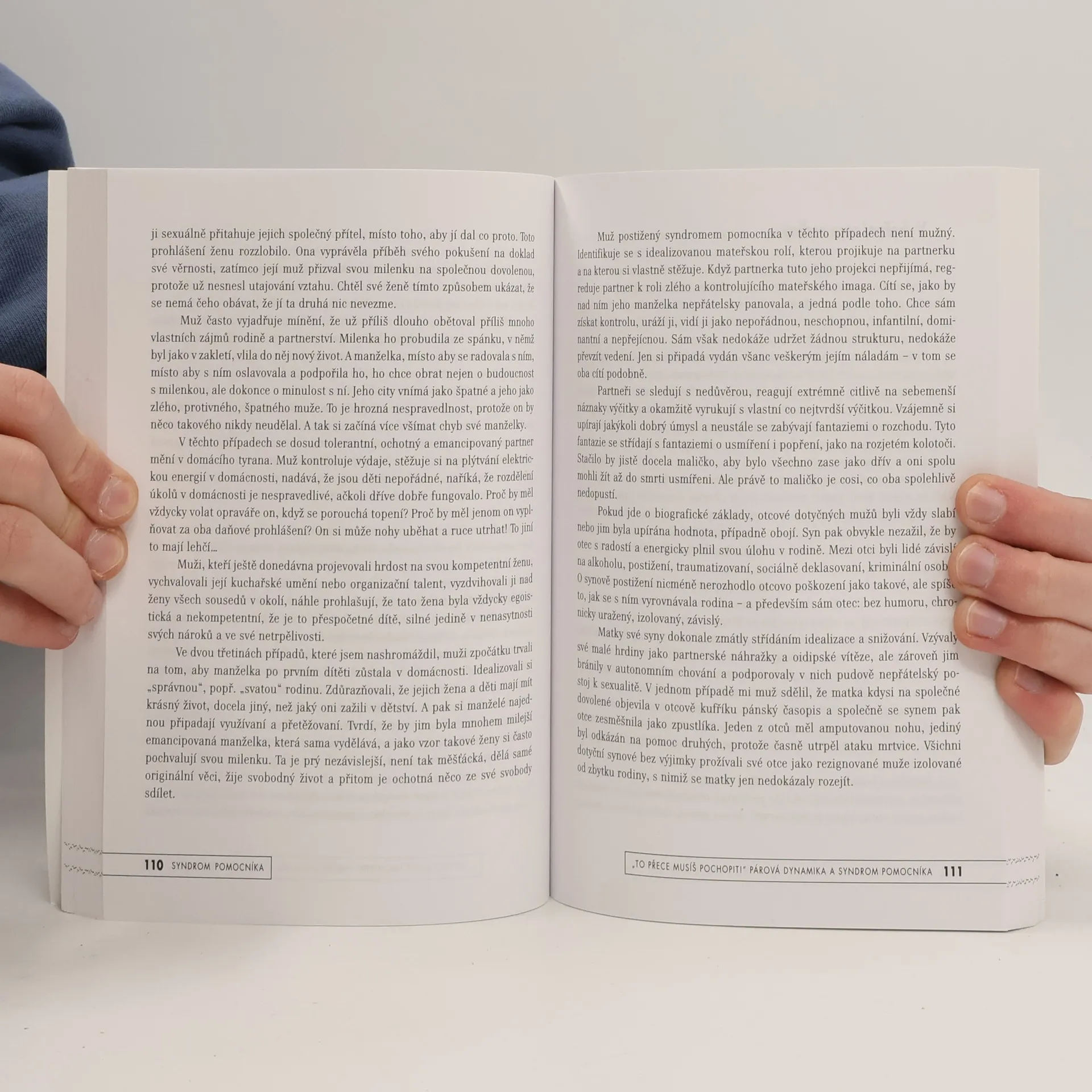 Syndrom pomocníka představuje nebezpečí, kterému jsou vystaveni lidé pracující v pomáhajících profesích – potřebě pomáhat, která je nevědomou obranou, kompenzující neschopnost prožívat a vyjadřovat vlastní emoce a potřeby. Autor předkládá vědecké poznatky k dané tematice a výklad doplňuje kazuistikami. Kromě popisu syndromu a faktorů podílejících se na jeho vzniku ukazuje autor vývoj v oblasti pomáhajících profesí a jeho dopad na popisovaný syndrom. Novými tématy jsou vliv syndromu pomocníka na párovou dynamiku, na jev mobbingu, nebo nebezpečí profesního vyhoření. Kniha je určena pracovníkům z oblasti pomáhajících profesí a zájemcům o toto téma.
