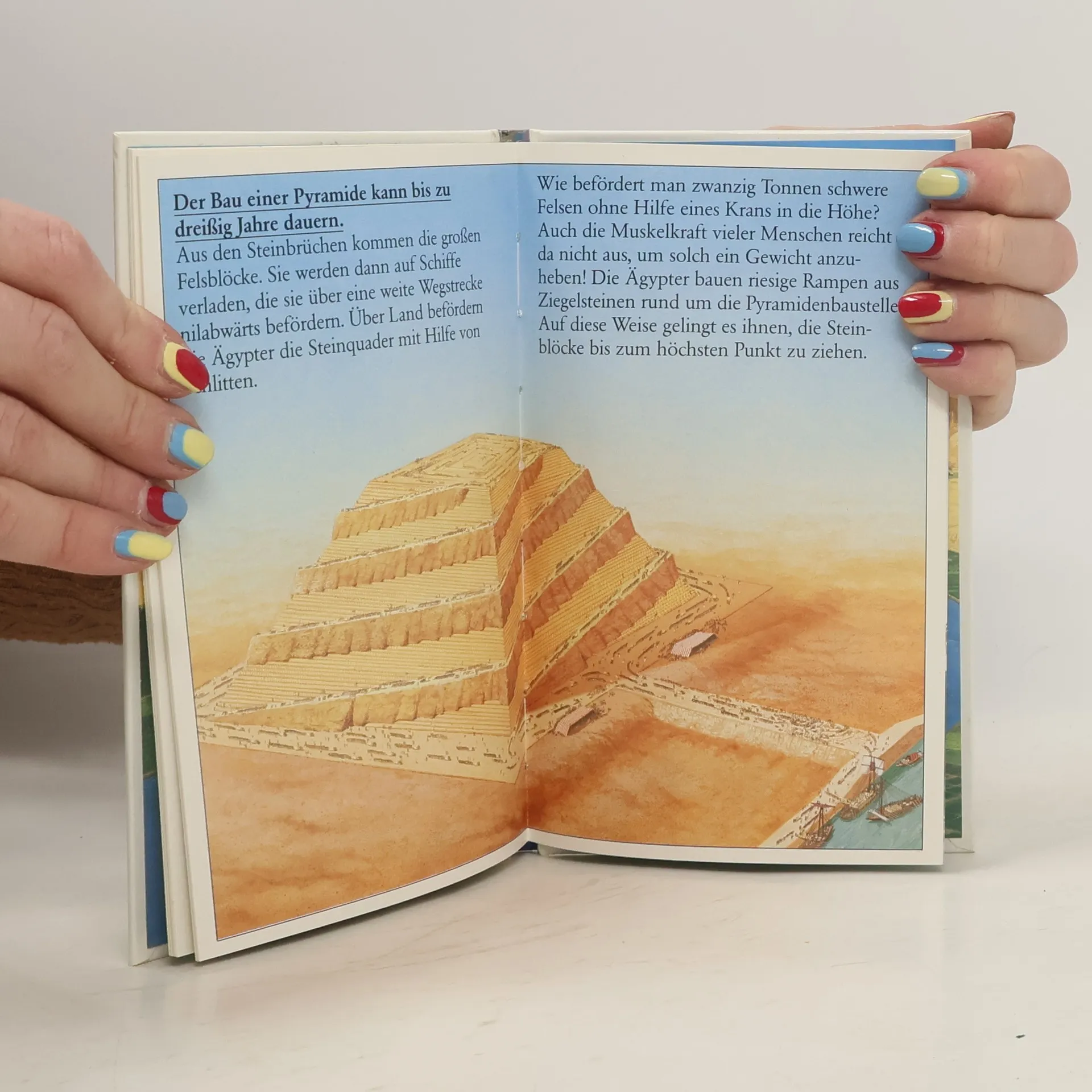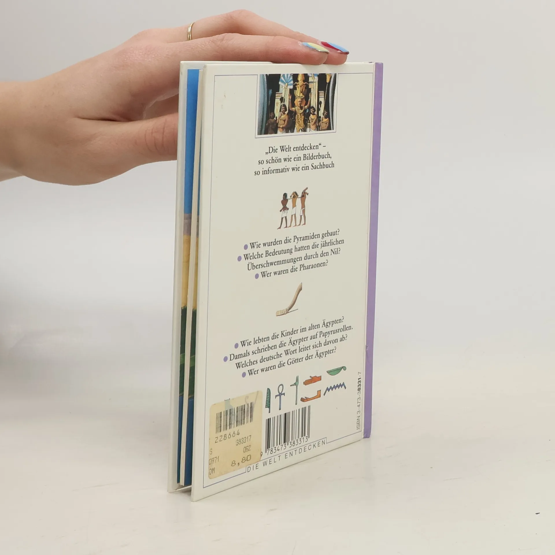 Informiert in Bild (Farbzeichnungen) und knappem Text über das Leben im alten Ägypten. (ab 9).