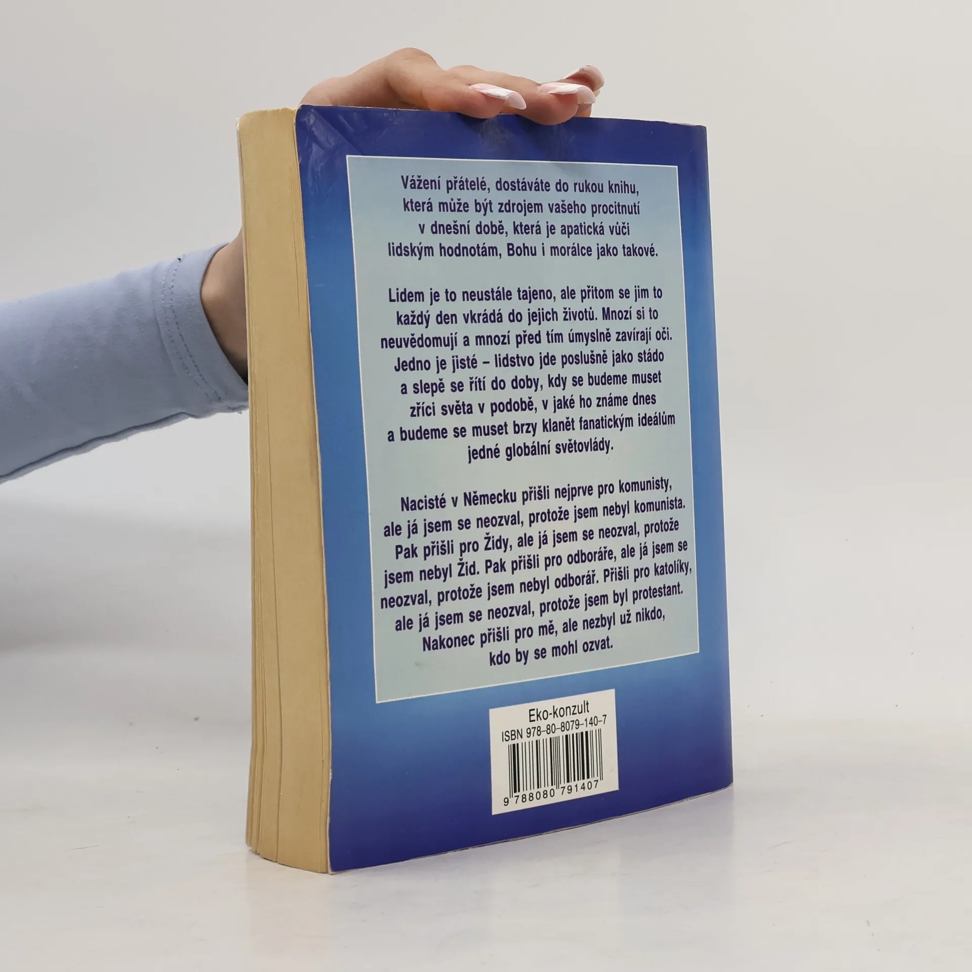 Aktualizované vydání studie vzešlé z pera spisovatele a filozofa, který varuje před negativními stránkami globalizace a vytvořením světové totalitní diktatury. Dne 4. listopadu 1998 otřásla Českou republikou naprosto nečekaná aféra. Aféra, která otřásla jak českými státními orgány, tak samotnou vládou USA. Toho dne byl totiž v České republice oficiálně odhalen koncentrační převýchovný tábor. Tento koncentrační tábor byl zřízen orgány USA v únoru 1998 na odlehlém místě, asi 10 kilometrů severozápadně od Brna v lokalitě nazvané Jelenice. Do roku 1993 se na území USA nacházelo již 43 koncentračních táborů. Dnešní situace je neznáma. "Nacisté v Německu přišli nejprve pro komunisty, ale já jsem se neozval, protože jsem nebyl komunista. Pak přišli pro Židy, ale já jsem se neozval, protože jsem nebyl Žid. Pak přišli pro odboráře, ale já jsem se neozval, protože jsem nebyl odborář. Přišli pro katolíky, ale já jsem se neozval, protože jsem byl protestant. Nakonec přišli pro mě, ale nezbyl už nikdo, kdo by se mohl ozvat."