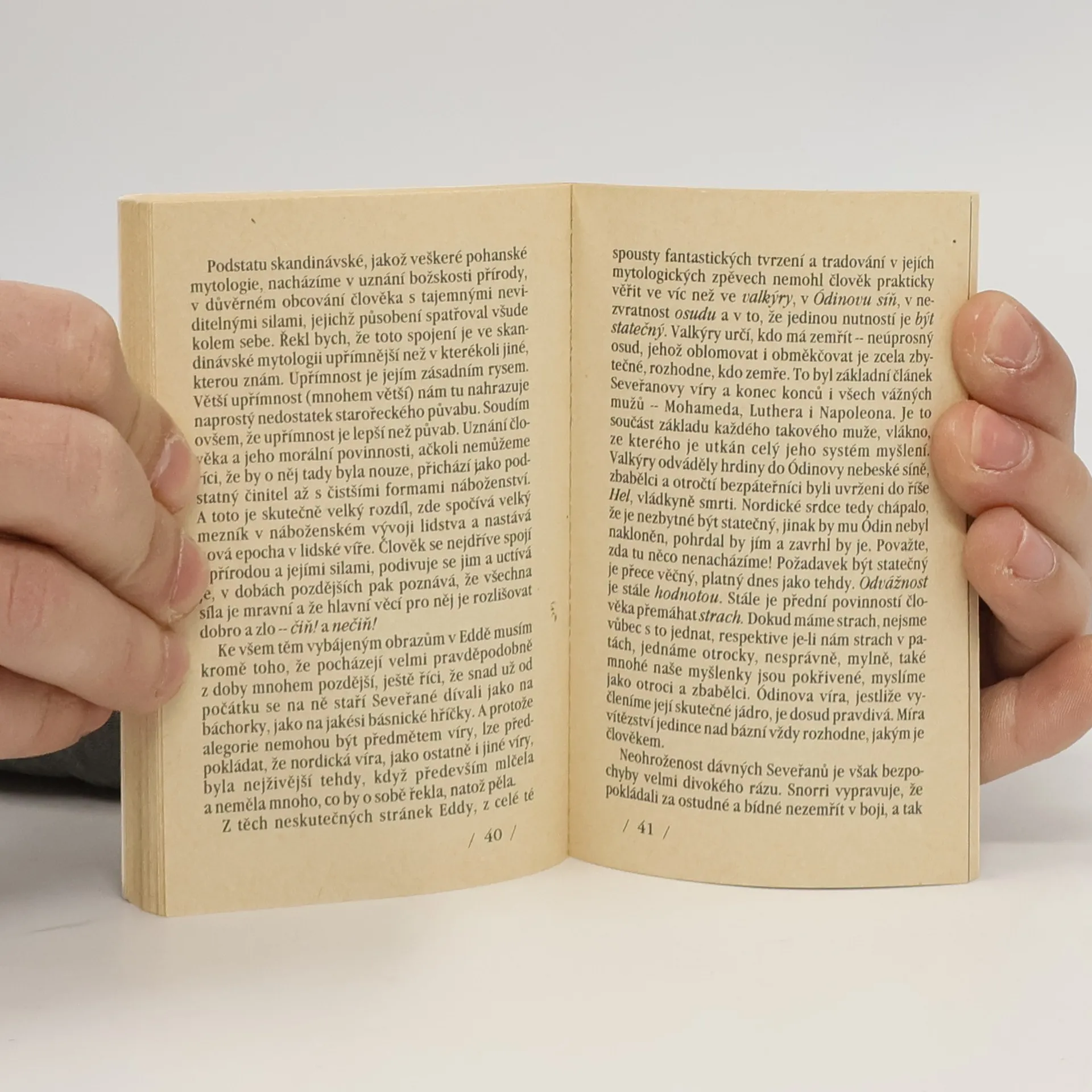 Podtitul: Ódin, pohanství a skandinávské báje O významu hrdinů a hrdinství v dějinách, o nejvyšším germánském božstvu i vztahu pohanů k přírodě. Vydání druhé, v tomto nakladatelství první.
