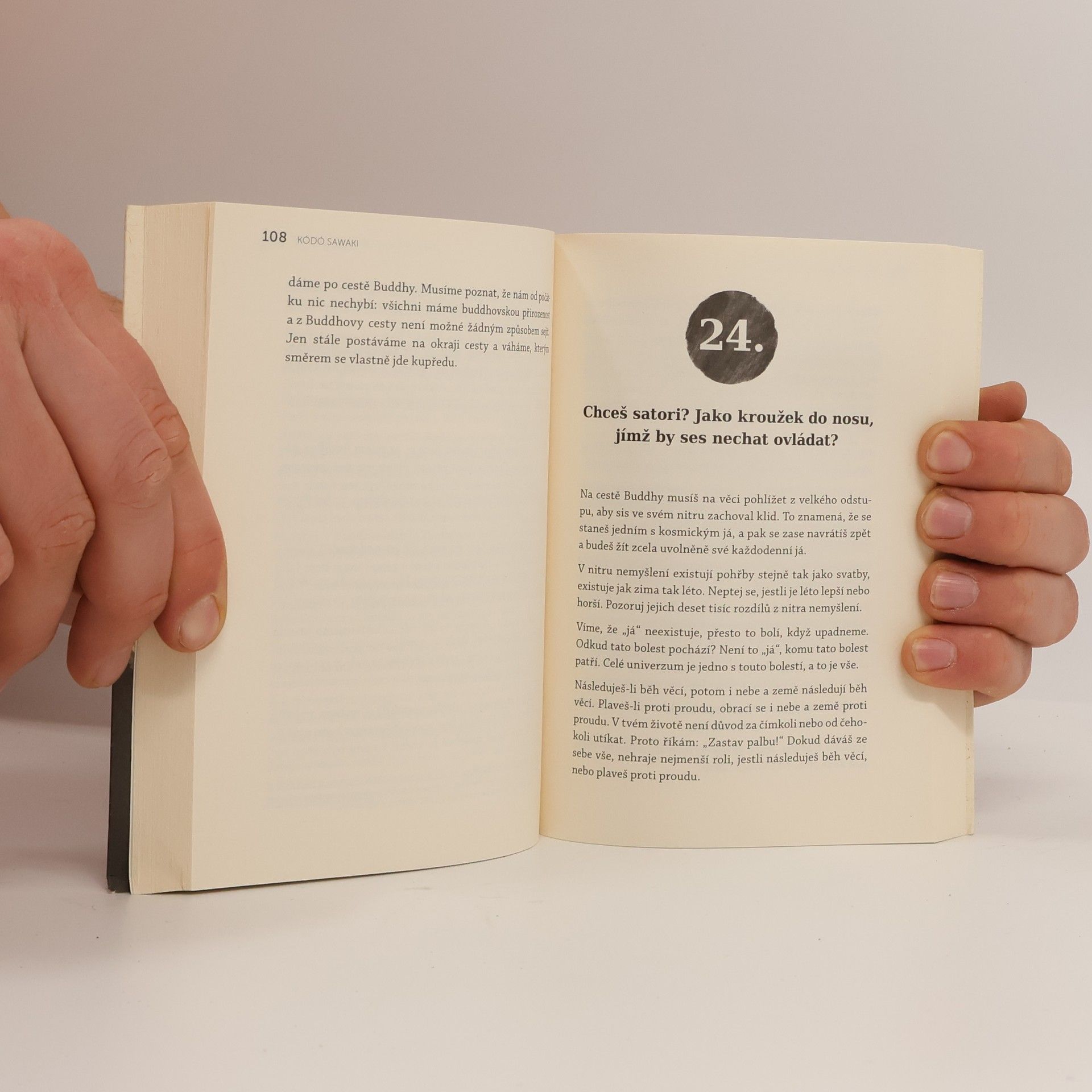 Chcete vědět, co je zen? Přečtěte si tuto vzácnou knihu. Pokud po jejím přečtení nic nepochopíte, zkuste ji znovu. Možná vás inspiruje k tomu, abyste se posadili a v klidu dýchali. V 60. letech dorazila na Západ vlna zenového buddhismu, především díky překladům autorů jako D. T. Suzuki. Zen se stal populárním a jeho estetika pronikla do designu a interiérů. Od té doby uplynulo 60 let a módní vlny orientální duchovnosti se měnily. Sawakiho kniha nám připomíná, co je na zenu přitažlivé: je přímočarý a jde „rovnou na věc“, což západní člověk, přetížený myšlenkami, hledá. Sawaki, významný zenový učitel linie Sótó, žil mezi lety 1880 a 1965 a byl známý nejen zasvěcencům, ale i široké veřejnosti díky svému charismatu a šíření zazenu. Důraz kladl na intenzivní praxi prostého sezení, což vedlo k zavedení týdenních „seššinů“ v jeho klášteře Antaidži, kde se denně konalo čtrnáct padesátiminutových zazenů. Jeho promluvy k žákům byly zapisovány a daly vzniknout japonskému originálu této knihy. Kvalitní literatura o zen-buddhismu je vzácná, zejména v češtině. Věříme, že vás živý a osobitý text Kódó Sawakiho zaujme a inspiruje.