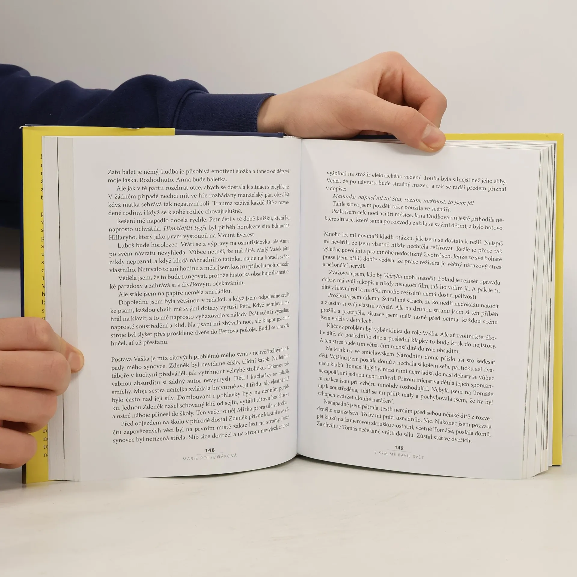 První autobiografie scenáristky a režisérky Marie Poledňákové, absolventky Akademie múzických umění a autorky 12 divácky úspěšných televizních i celovečerních filmů, z nichž S tebou mě baví svět získal ocenění Nejlepší veselohra století. Otevřeně a s důkladností a literární zručností sobě vlastní nás autorka provází svým životem od dětství až do současnosti. Je to příběh plný napětí, zvratů, překonávání překážek, vášní, bolesti i štěstí, příběh, po jehož přečtení smekneme.