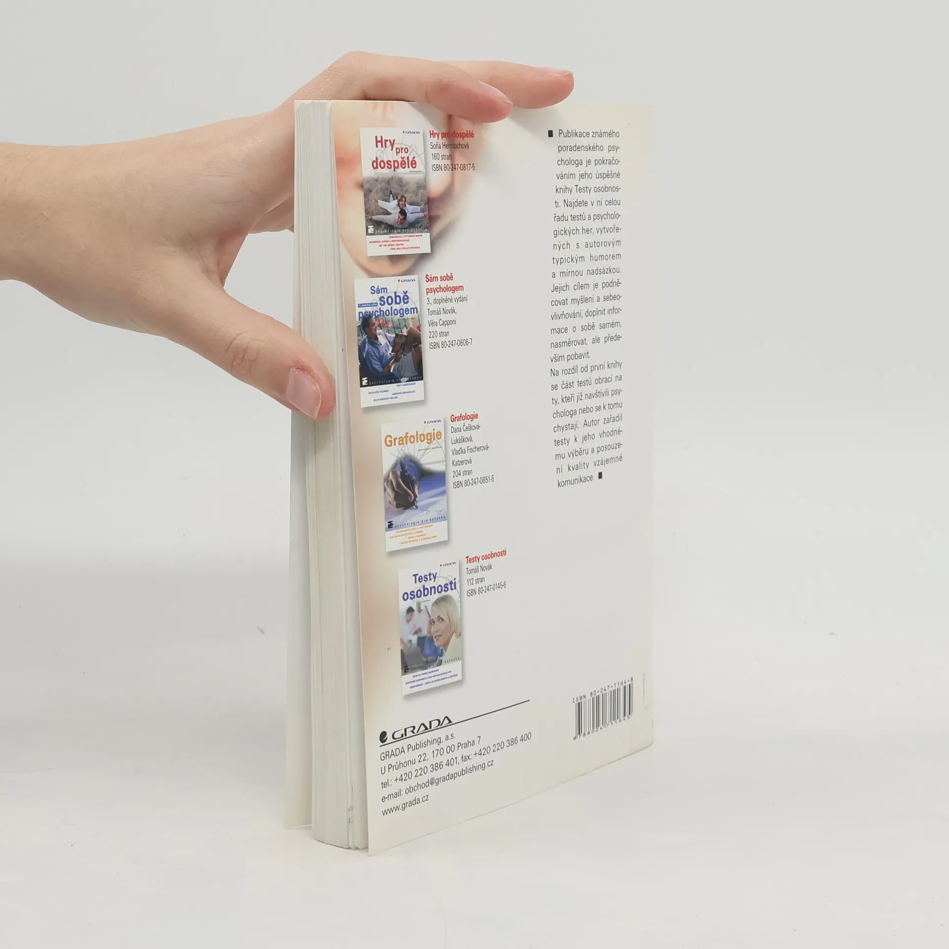 Publikace známého poradenského psychologa je pokračováním jeho úspěšné knihy Testy osobnosti. Najdete v ní celou řadu testů a psychologických her, vytvořených s autorovým typickým humorem a mírnou nadsázkou. Jejich cílem je podněcovat myšlení a sebeovlivňování, doplnit informace o sobě samém, nasměrovat, ale především pobavit.Na rozdíl od první knihy se část testů obrací na ty, kteří již navštívili psychologa nebo se k tomu chystají. Autor zařadil testy k jeho vhodnému výběru a posouzení kvality vzájemné komunikace.