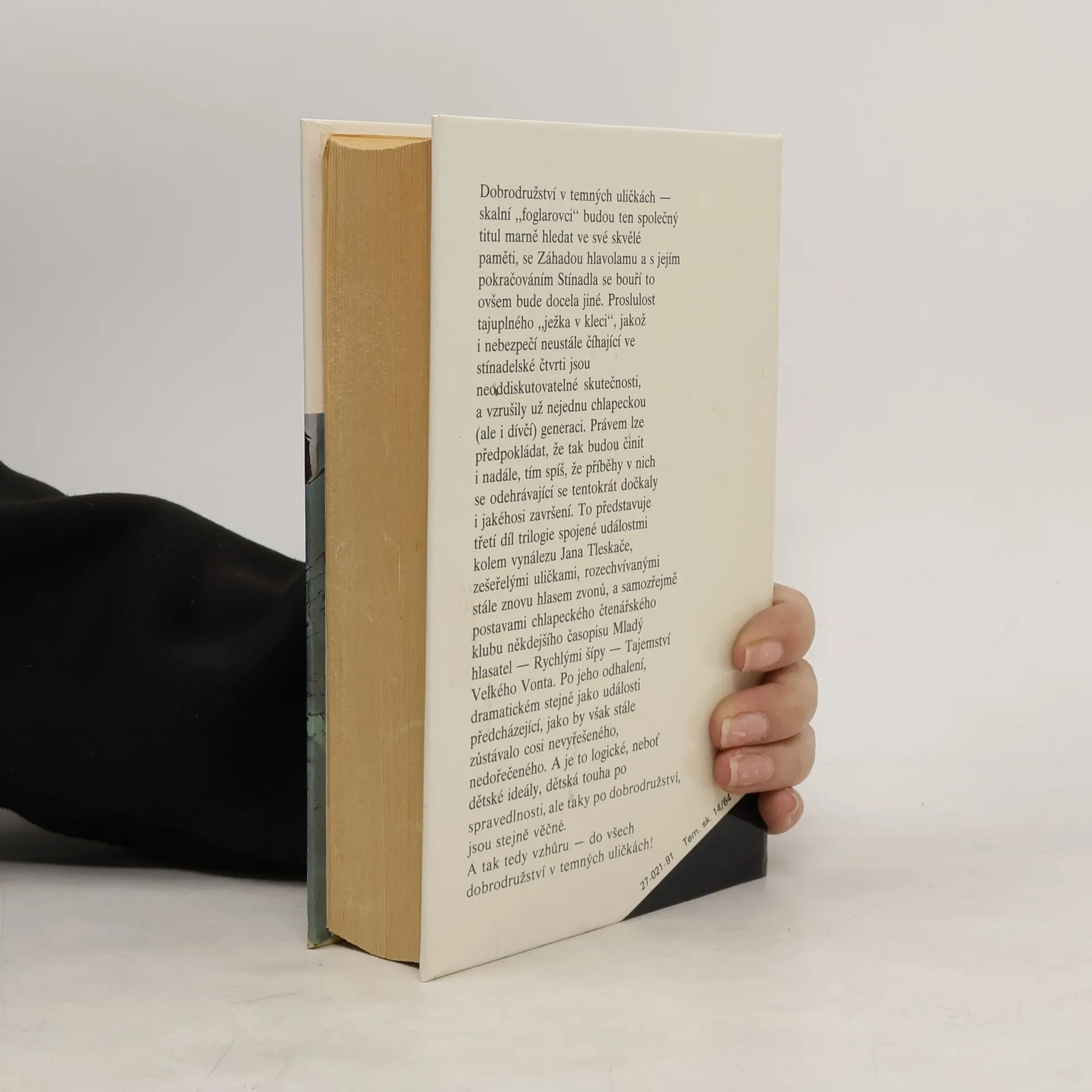 Dobrodružství v temných uličkách - skalní "foglarovci" budou ten společný titul marně hledat ve své skvělé paměti, se Záhadou hlavolamu a s jejím pokračováním Stínadla se bouří to ovšem bude docela jiné. Proslulost tajuplného "ježka v kleci", jakož i nebezpečí neustále číhající ve stínadelské čtvrti jsou neoddiskutovatelné skutečnosti, a vzrušily už nejednu chlapeckou (ale i dívčí) generaci. Právem lze předpokládat, že tak budou činit i nadále, tím spíš, že příběhy v nich se odehrávající se tentokrát dočkaly i jakéhosi završení.To představuje třetí díl trilogie spojené událostmi kolem vynálezu Jana Tleskače, zešeřelými uličkami, rozechvívanými stále znovu hlasem zvonů, a samozřejmě postavami chlapeckého čtenářského klubu někdejšího časopisu Mladý hlasatel - Rychlými šípy - Tajemství Velkého Vonta. Po jeho odhalení, dramatickém stejně jako události předcházející, jako by však stále zůstávalo cosi nevyřešeného, nedořečeného. A je to logické, neboť dětské ideály, dětská touha po spravedlnosti, ale tady po dobrodružství, jsou stejně věčné. A tak tedy vzhůru - do vše dobrodružství v temných uličkách! 1/ Záhada hlavolamu 2/ Stínadla se bouří 3/ Tajemství Velké Vonta