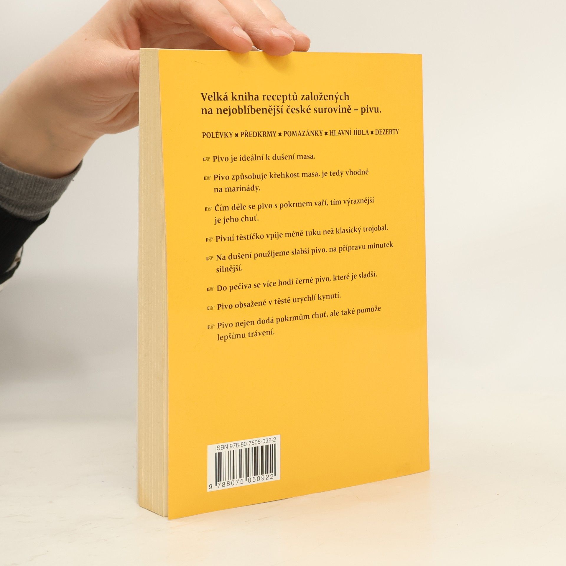 Po úspěchu Hermelínové kuchařky přichází Marie Formáčková s další knihou receptů, tentokrát se základní surovinou pivem. Obsahuje tipy na všemožná jídla od polévek, předkrmů a pomazánek až po hlavní jídla a nechybí ani trochu nečekaně dezerty.