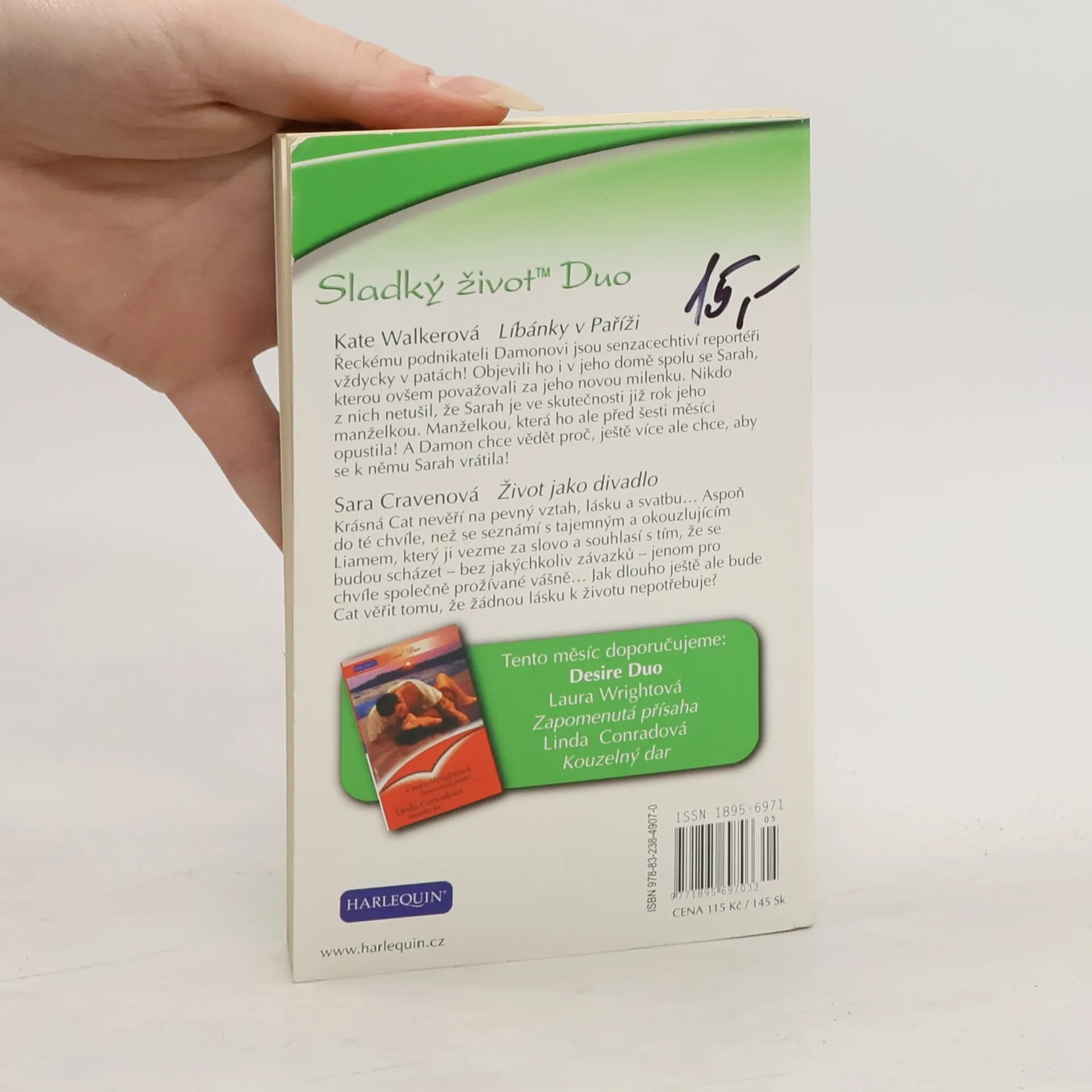 Líbánky v Paříži Řeckému podnikateli Damonovi jsou senzacechtiví reportéři vždycky v patách! Objevili ho i v domě spolu se Sarah, kterou ovšem považovali za jeho novou milenku. Nikdo z nich netušil, že Sarah je ve skutečnosti již rok jeho manželkou. Manželkou, která ho ale před šesti měsíci opustila! A Damon chce vědět proč, ještě více ale chce, aby se k němu Sarah vrátila! Život jako divadlo Krásná Cat nevěří na pevný vztah, lásku a svatbu… Aspoň do té chvíle, než se seznámí s tajemným a okouzlujícím Liamem, který ji vezme za slovo a souhlasí s tím, že se budou scházet – bez jakýchkoliv závazků – jenom pro chvíle společně prožívané vášně… Jak dlouho ještě ale bude Cat věřit tomu, že žádnou lásku k životu nepotřebuje?