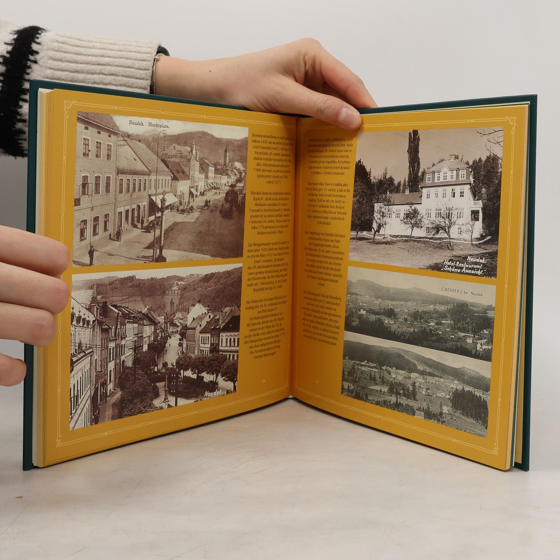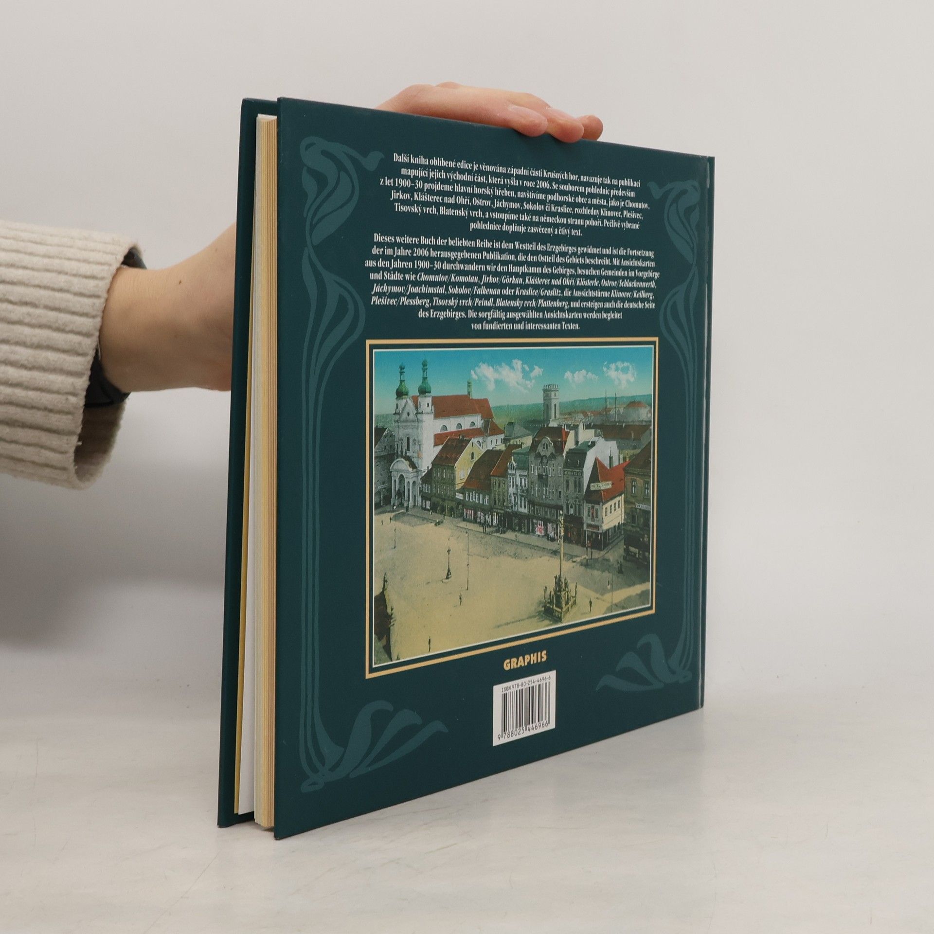 Další kniha populární edice historických pohlednic mapuje západní část Krušných hor, navazuje tak na první knihu, která vyšla v roce 2006. Toto severočeské pohoří v dobách největšího rozmachu pohlednic představovalo turisticky velmi oblíbenou a přírodovědně bohatou oblast, jádro knihy tvoří především pohlednice z let 1900-1920. Projdeme s nimi hlavní západní horský hřeben, vstoupíme na samoty krušnohorských osad i do zašlých časů podhorských obcí, navštívíme rozhledny Klínovec, Plešivec, Tisovský vrch, Blatenský vrch, významné historické památky Chomutova, Jirkova, Klášterce nad Ohří, Ostrova, Jáchymova, Sokolova či Kraslic. Překročíme také státní hranici a nahlédneme na německou stranu hor. Kniha představuje soubor téměř tří set nejkrásnějších a nejzajímavějších pohlednic pečlivě vybraných z mnoha muzejních a soukromých sbírek. A jelikož se jedná o vůbec první takto zaměřenou publikaci, přinese jistě mnoho nového a zajímavého nejen místním obyvatelům, ale i všem ostatním návštěvníkům Krušných hor.