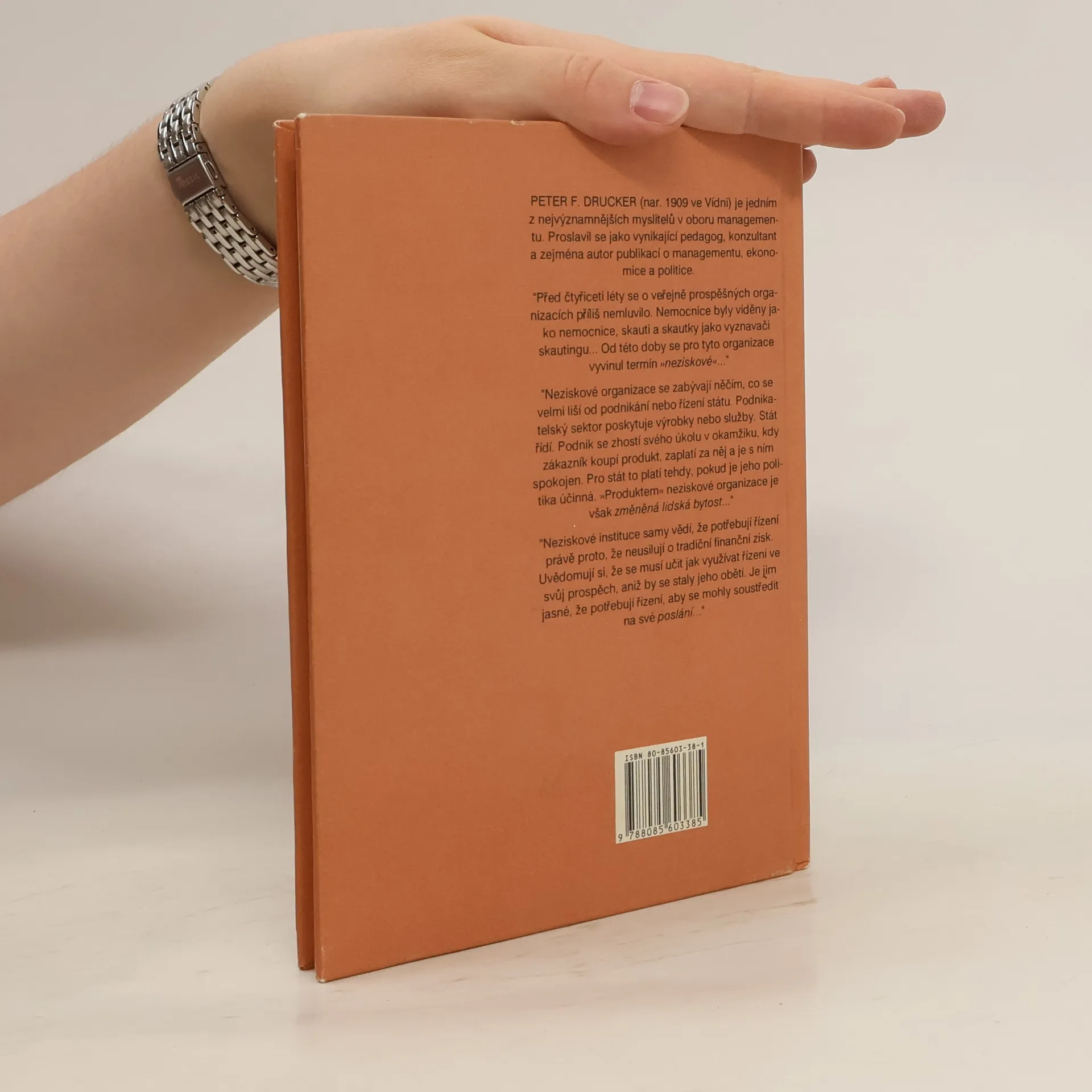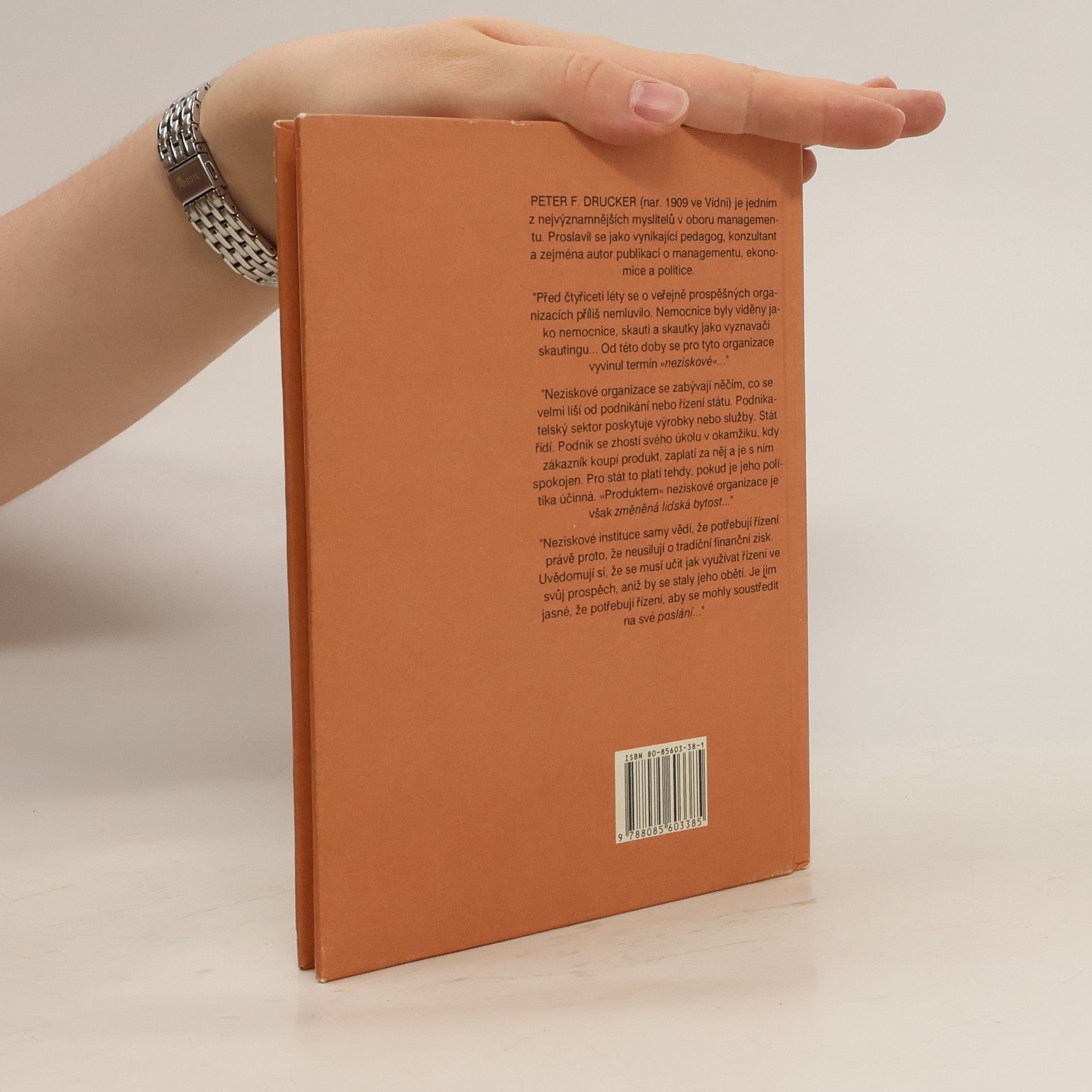 "Před čtyřiceti lety se o veřejně prospěšných organizacích příliš nemluvilo. Nemocnice byly viděny jako nemocnice, skauti a skautky jako vyznavači skautingu... Od té doby se pro tyto organizace vyvinul termín "neziskové"..." "Neziskové organizace se zabývají něčím, co se velmi liší od podnikání nebo řízení státu. Podnikatelský sektor poskytuje výrobky nebo služby. Stát řídí. Podnik se zhostí svého úkolu v okamžiku, kdy zákazník koupí produkt, zaplatí za ně a je s ním spokojen. Pro stát to platí tehdy, pokud je jeho politika účinná. "Produktem" neziskové organizace je však změněná lidská bytost..." Neziskové instituce samy vědí, že portřebují řízení právě proto, že neusilují o tradiční finanční zisk. Uvědomují si, že se musí učit jak využívat řízení ve svůj prospěch, aniž by se staly jeho obětí. Je jim jasné, že potřebují řízení, aby se mohly soustředit na své poslání..."