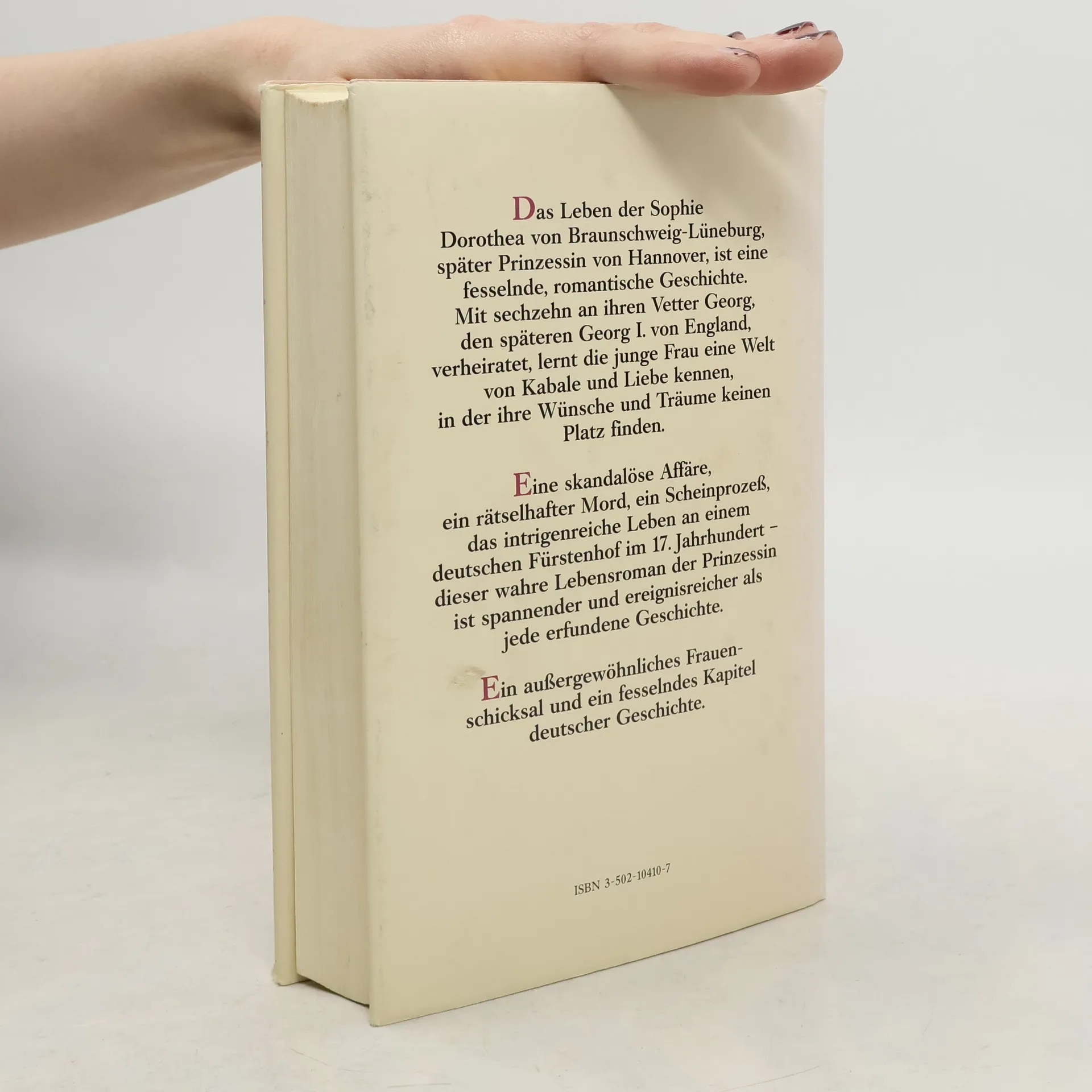 Der historisch-biographische Roman erzählt die Lebensgeschichte der Sophie Dorothea von Braunschweig-Lüneburg