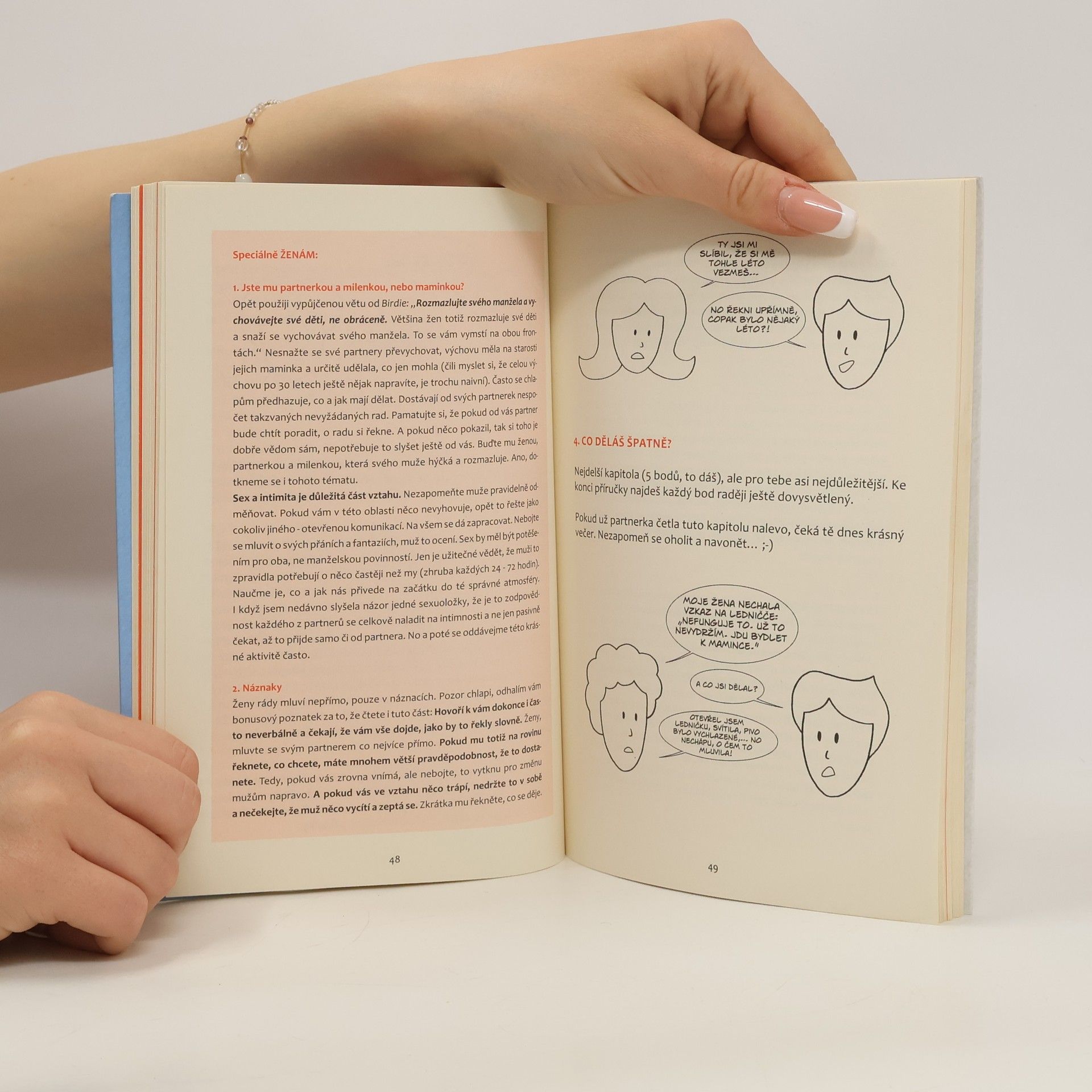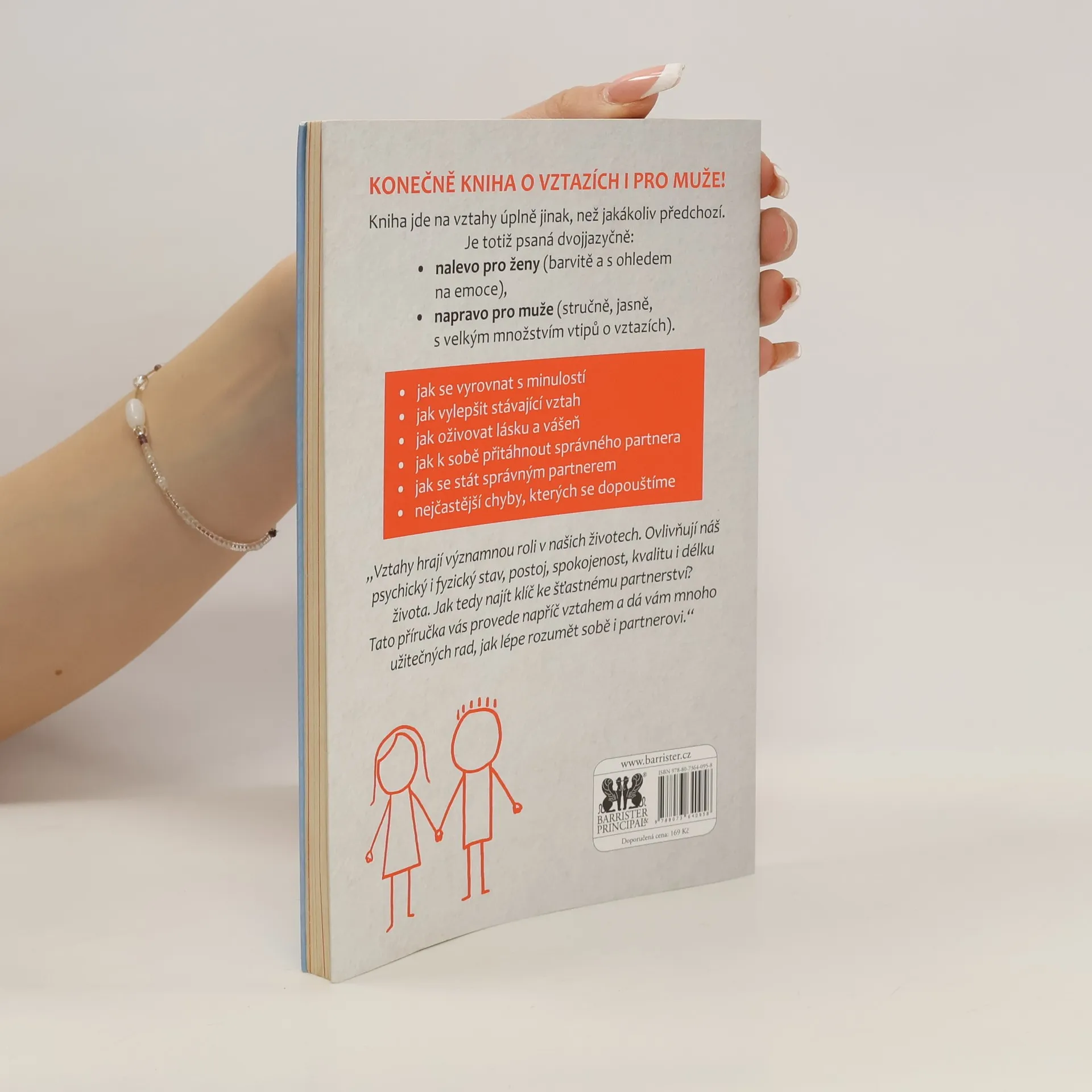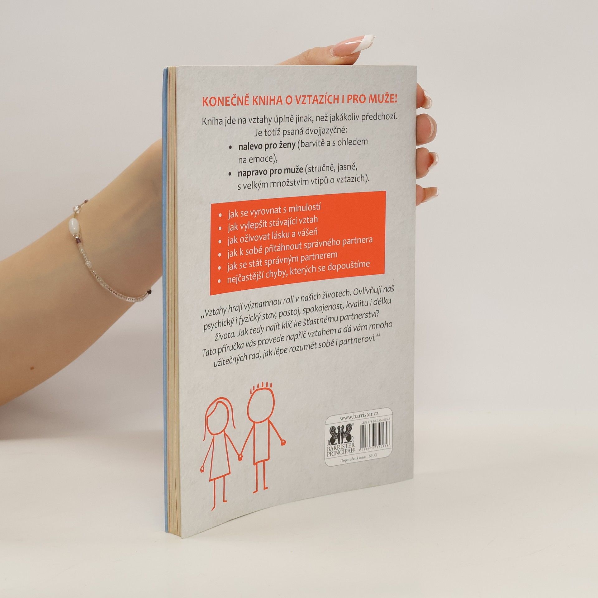 Kniha o vztazích i pro muže! Kniha jde na vztahy úplně jinak, než jakákoliv předchozí. Je totiž psaná dvojjazyčně: nalevo pro ženy (barvitě a s ohledem na emoce); napravo pro muže (stručně, jasně, s velkým množstvím vtipů o vztazích). Hlavní témata: -jak se vyrovnat s minulostí, -jak vylepšit stávající vztah, -jak oživovat lásku a vášeň, jak k sobě přitáhnout správného partnera, -jak se stát správným partnerem, -nejčastější chyby, kterých se dopouštíme. „Vztahy hrají významnou roli v našich životech. Ovlivňují náš psychický i fyzický stav, postoj, spokojenost, kvalitu i délku života. Jak tedy najít klíč ke šťastnému partnerství? Tato příručka vás provede napříč vztahem a dá vám mnoho užitečných rad, jak lépe rozumět sobě i partnerovi.“