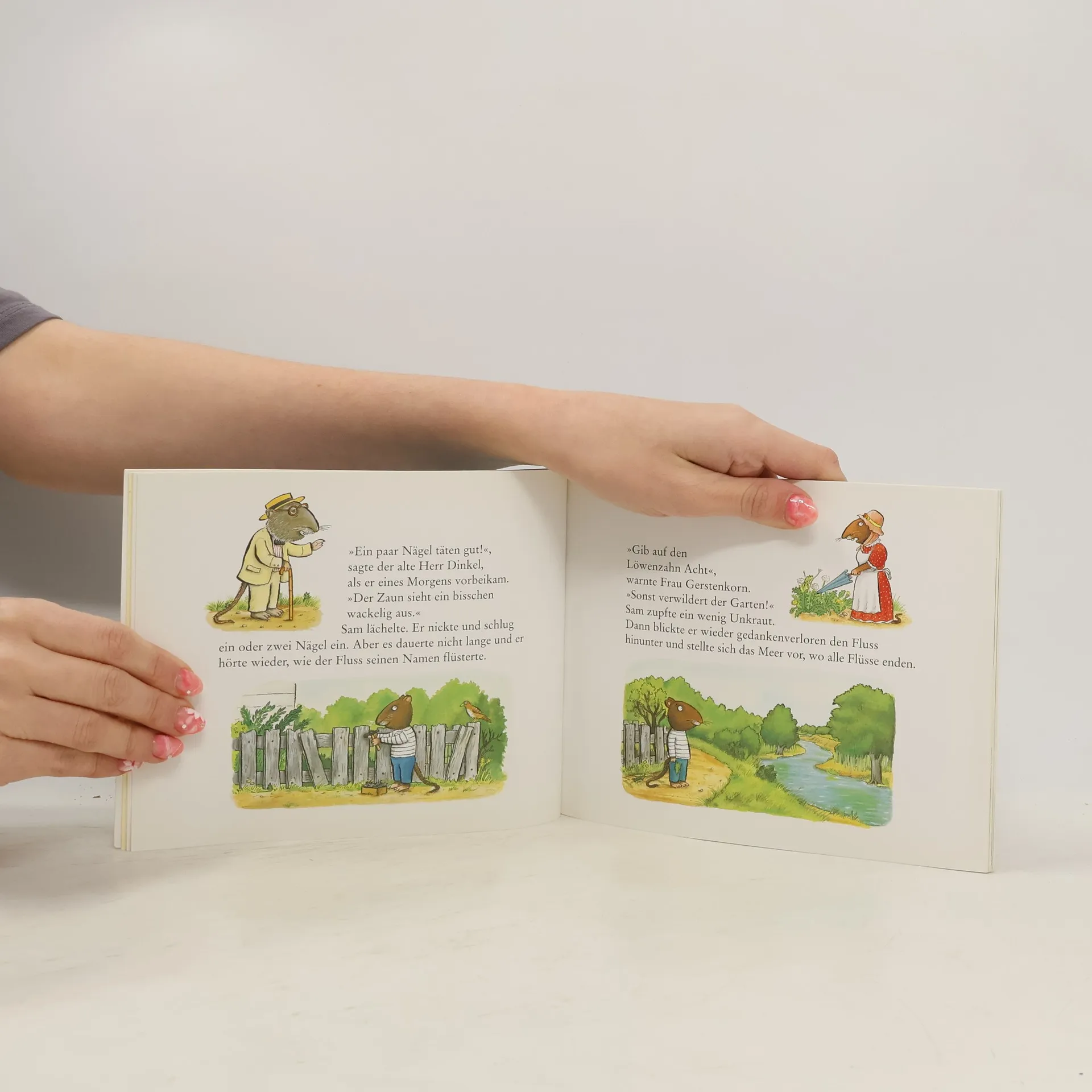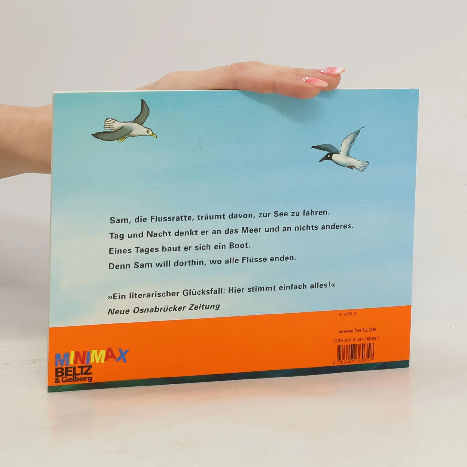„Was willst du denn auf dem Meer?“, fragte der alte Herr Dinkel. „Es liegt mir im Blut“, sagte Sam. „Ist wohl eher die Frühjahrsgrippe“, murmelte Frau Gerstenkorn. „Das legt sich wieder.“ Sam, die Flussratte, träumt vom Meer. Nichts kann ihn aufhalten, nicht die Skepsis der Nachbarn, die Zweifel von Herrn Dinkel oder Frau Gerstenkorn. So baut er sich ein Boot, das ihn hinaus in die Ferne tragen soll. Und eines Tages segelt er davon ... Daheim sorgen sich alle um ihn und vermuten das Schlimmste. Bis eines Tages eine Möwe einen Zettel über Sams verlassenem Haus fallen lässt: Macht euch bitte keine Sorgen - ich bin glücklich. „Eine Kostbarkeit.“ Gabriele Hoffmann, BuchMarkt „Ein literarischer Glücksfall: Hier stimmt einfach alles!“ Neue Osnabrücker Zeitung