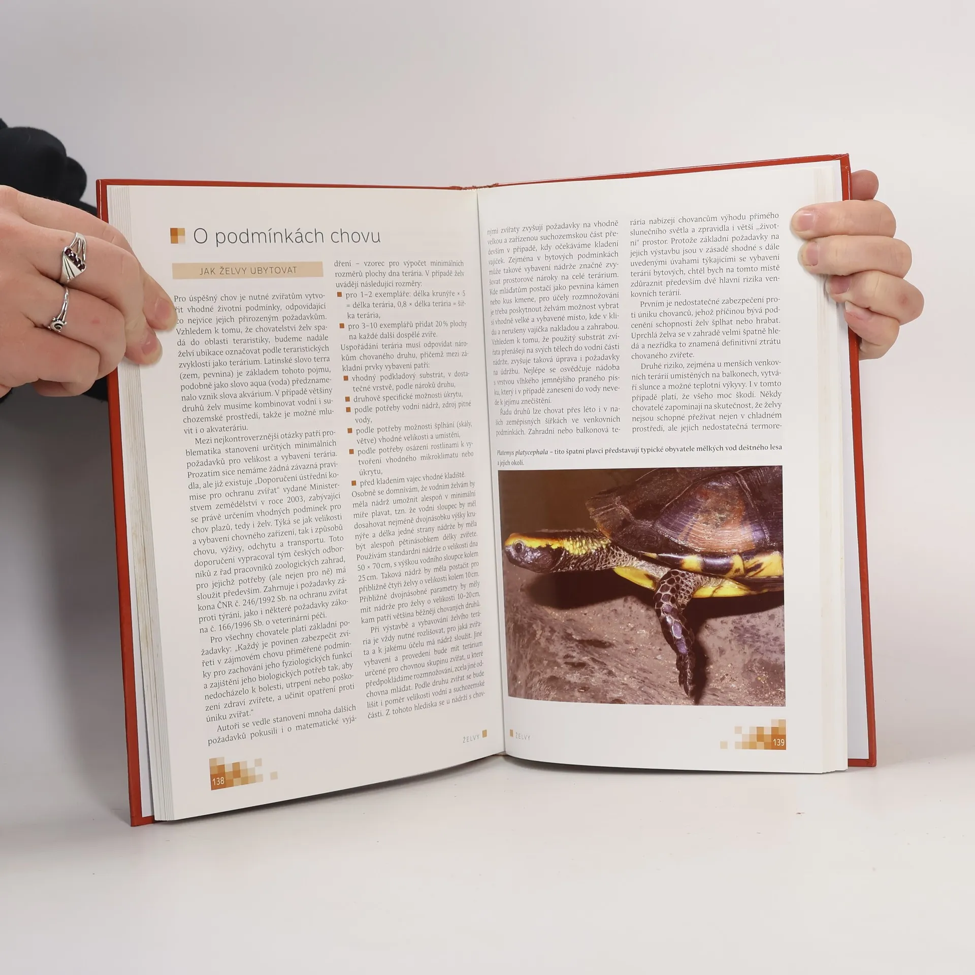 Kniha je určena zájemcům o želvy, jak chovatelům, tak i všem dalším, kdo mají zájem se dozvědět více o těchto starobylých zástupcích živočišné říše. V úvodních kapitolách se čtenář dočte o postavení želv v zoologickém systému, o stavbě jejich těla a o významu a rozvoji jednotlivých smyslů. Seznámí se i s problematikou odborného názvosloví a taxonomie. V další rozsáhlé části jsou postupně představeny jednotlivé typy želv podle odlišných přírodních podmínek, v nichž se vyskytují – mořské, sladkovodní, lesní a suchozemské. V charakteristice míst na Zemi jsou popsáni nejtypičtější nebo pro chovatele nejdostupnější zástupci želv z těchto zoogeografických oblastí. Důraz je kladen na klimatické podmínky, jejichž odrazem jsou i nároky jednotlivých druhů na podmínky v chovu. Zejména chovatelům jsou určené kapitoly věnované budování a vybavení želvích terárií, stejně i dalším faktorům podmiňujícím úspěšný chov a odchov želv. Nechybí ani část věnovaná nejběžnějším zdravotním problémům, jejich řešení a nutné prevenci. Důraz je kladen i na ochranu želv v jejich přírodním prostředí, na význam chovu a úspěšného rozmnožování v péči člověka pro druhy, jejichž existence je v místě původního výskytu ohrožená. Jako v každé podobné publikaci zde nechybí ani atlásek s charakteristikami nejčastěji chovaných druhů (45 druhů) s upozorněním na jejich specifické vlastnosti a požadavky.
