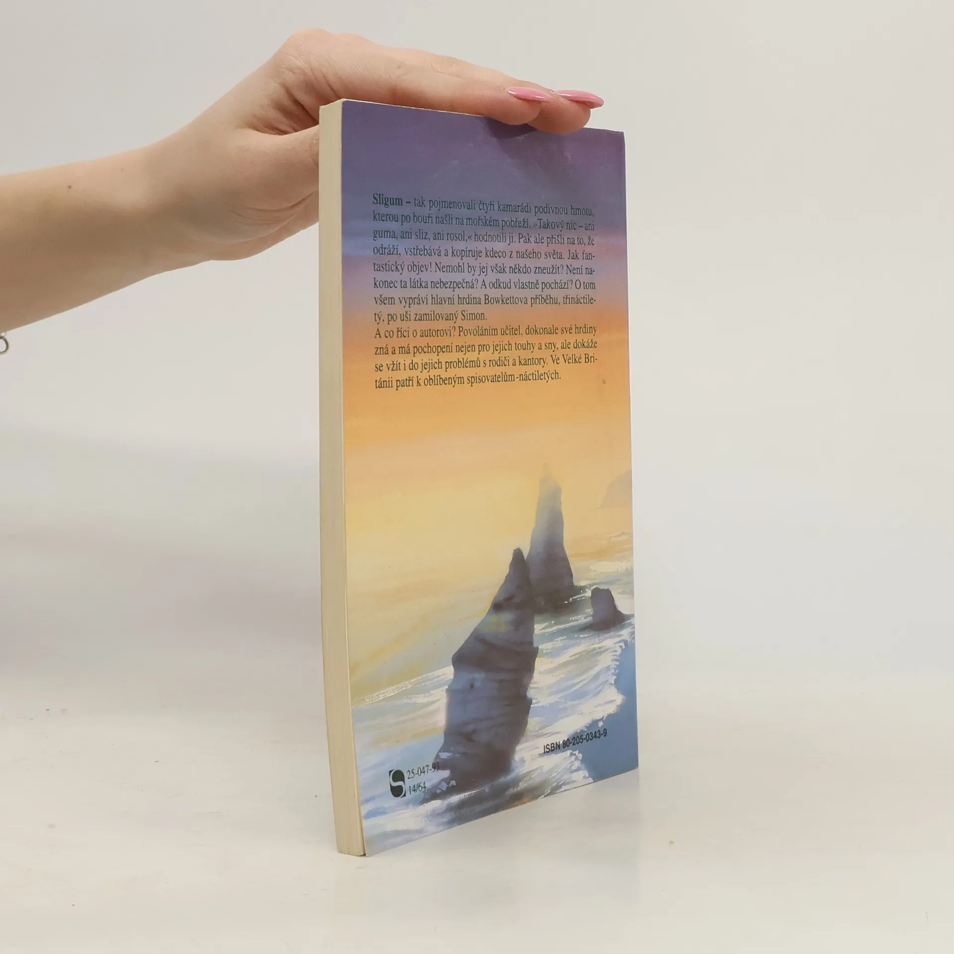 Sligum - tak pojmenovali čtyři kamarádi podivnou hmotu, kterou po bouři našli na mořském pobřeží. ,,Takový nic, ani guma, ani sliz, ani rosol," hodnotili ji. Pak ale přišli na to, že odráží, vstřebává a kopíruje kdeco z našeho světa. Jak fantastický objev! Nemohl by jej však někdo zneužít? Není nakonec ta látka nebezpečná? A odkud vlastně pochází? O tom všem vypráví hlavní hrdina Bowkettova příběhu, třináctiletý, po uši zamilovaní Simon.