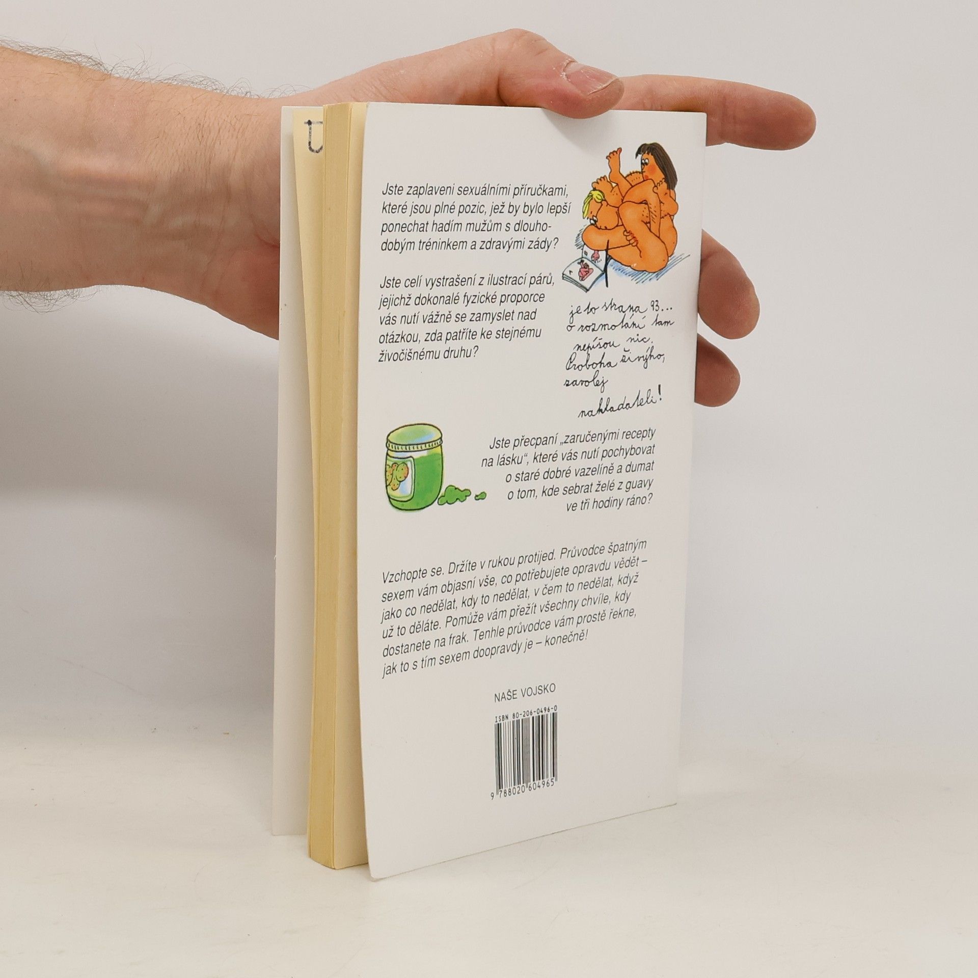Jste zaplaveni sexuálními příručkami, které jsou plné pozic, jež by bylo lepší ponechat hadím mužům s dlouhodobým tréninkem a zdravými zády? Jste celí vystrašení z ilustrací párů, jejichž dokonalé fyzické proporce vás nutí vážně se zamyslet nad otázkou, zda patříte ke stejnémuživočišnému druhu? Jste přecpaní "zaručenými recepty na lásku", které vás nutí pochybovat o staré dobré vazelíně a dumat o tom, kde sebrat želé z guavy ve tři hodiny ráno? Vzchopte se. Držíte v rukou protijed. Průvodce špatným sexem vám objasní vše, co potřebujete opravdu vědět - jako co nedělat, kdy to nedělat, v čem to nedělat, když už to děláte. Pomůže vám přežít všechny chvíle, kdy dostanete na frak. Tenhle průvodce vám prostě řekne, jak to s tím sexem doopravdy je - konečně!