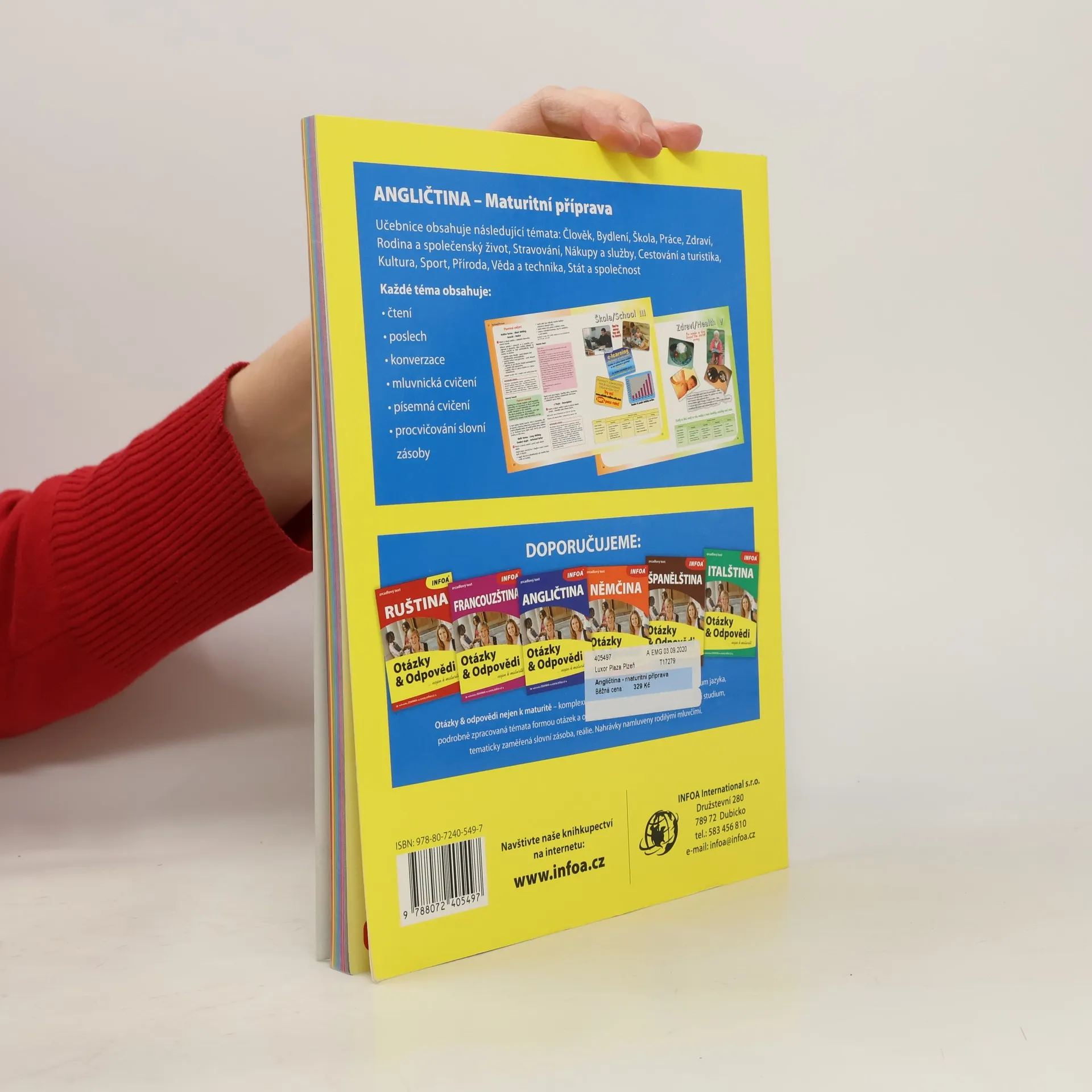 Učebnice připravuje studenty k maturitní zkoušce na základní B1 i pokročilé B2 úrovni. Obsahuje témata jako Člověk, Dům, Škola, Práce, Zdraví, Rodina, Nákupy, Sport, Stát a společnost. Každé téma obsahuje lexikální cvičení, mluvnická cvičení, čtení, poslech, konverzaci a písemná cvičení. Nahrávka ke knize je k dispozici na infoa.cz zdarma. Součástí knihy je klíč ke cvičením, slovníček, přepis nahrávek a seznam nepravidelných sloves.