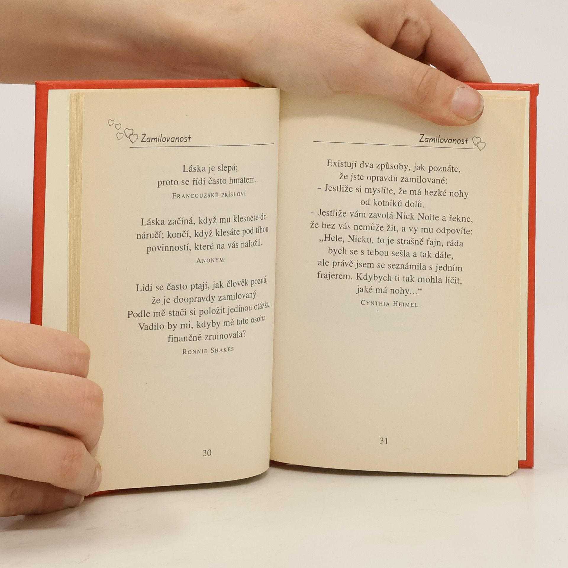 Nikdo nepochybuje o tom, že láska patří k nejvznešenějším lidským citům. Knížka O lásce s úsměvem je však důkazem, že se na ni dá pohlédnout i bez sentimentálního vzdychání. Je jisté, že láska patří k nejkrásnějším lidským zážitkům, ale jelikož dovede i pěkně potrápit, není na škodu podívat se na ni trochu s nadhledem.