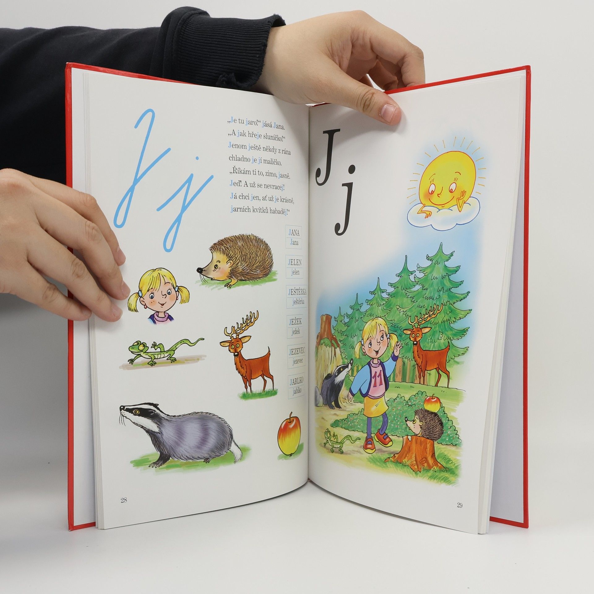 Netradičně zpracovaná abeceda je pomůckou pro výuku čtení. Celobarevné dějové obrázky doprovázejí úvodní veršované texty k jednotlivým písmenům, nechybí ani obrázky k vyvození určitého písmene. Knížka je využívána k nácviku čtení tiskacích i psacích písmen.