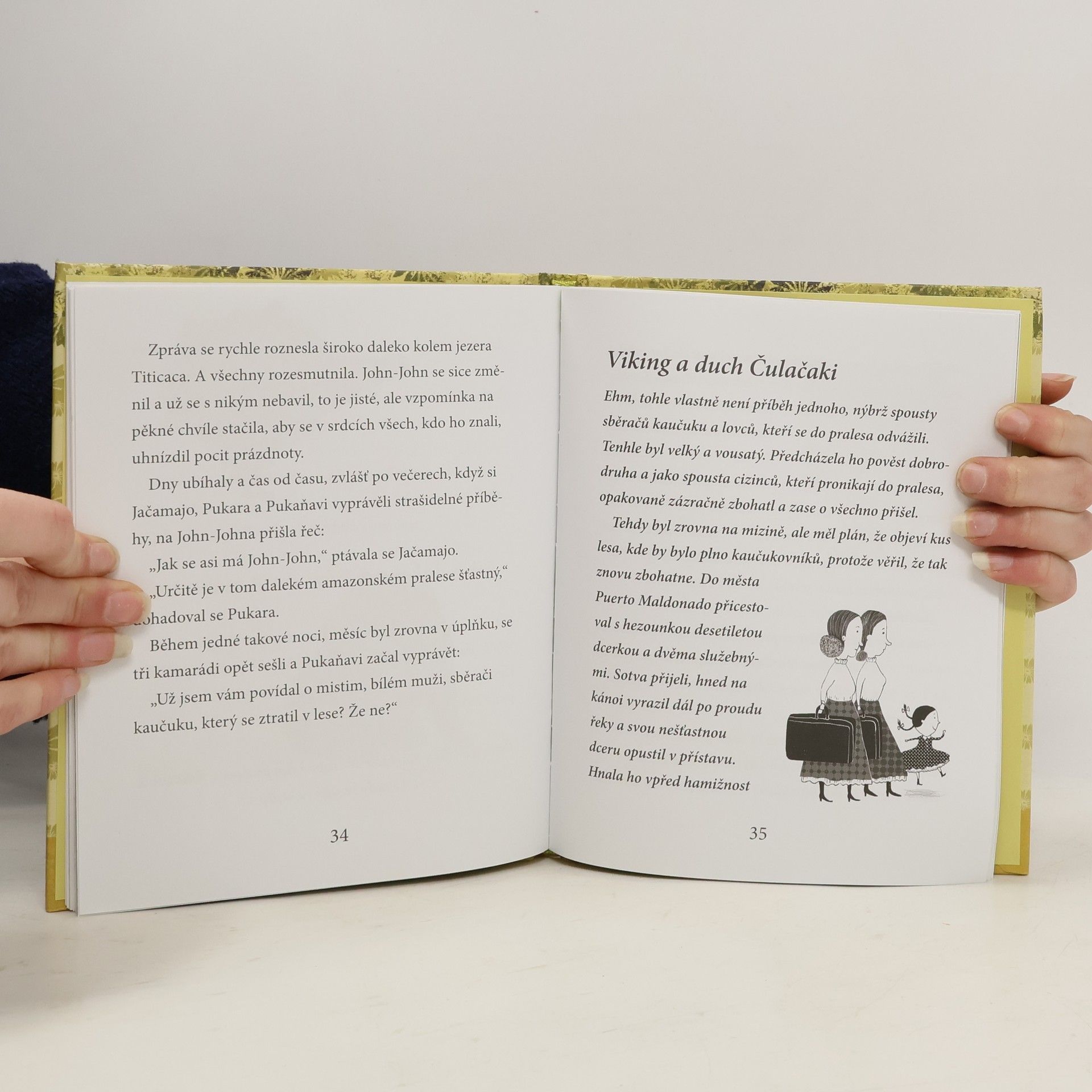 Co se to děje? U jezera Titicaca uprostřed Andského pohoří se zničehonic objevil dráček. Jako by nestačilo, že je celý fialový a trochu obtloustlý, navíc ještě místo ohně chrlí mýdlové bubliny. Však se mu za to ostatní zvířátka pěkně smějí. Jednoho dne k jezeru dorazí krásná dračice Marina a zanedlouho se s ní dráček John-John ztratí stejně náhle, jako se objevil. Jeho přátelé, sova Jačamajo, puma Pukara a jaguár Pukaňavi, se kterými si dřív po večerech vyprávěl tajemné příběhy, o něj dostanou strach a vydají se ho hledat. Co když ho unesl zlý duch Čulačaki? Knížka pro nejmenší čtenáře plná roztomilých ilustrací, exotických zvířat a tajemství, která může ukrývat jen hustý amazonský prales.