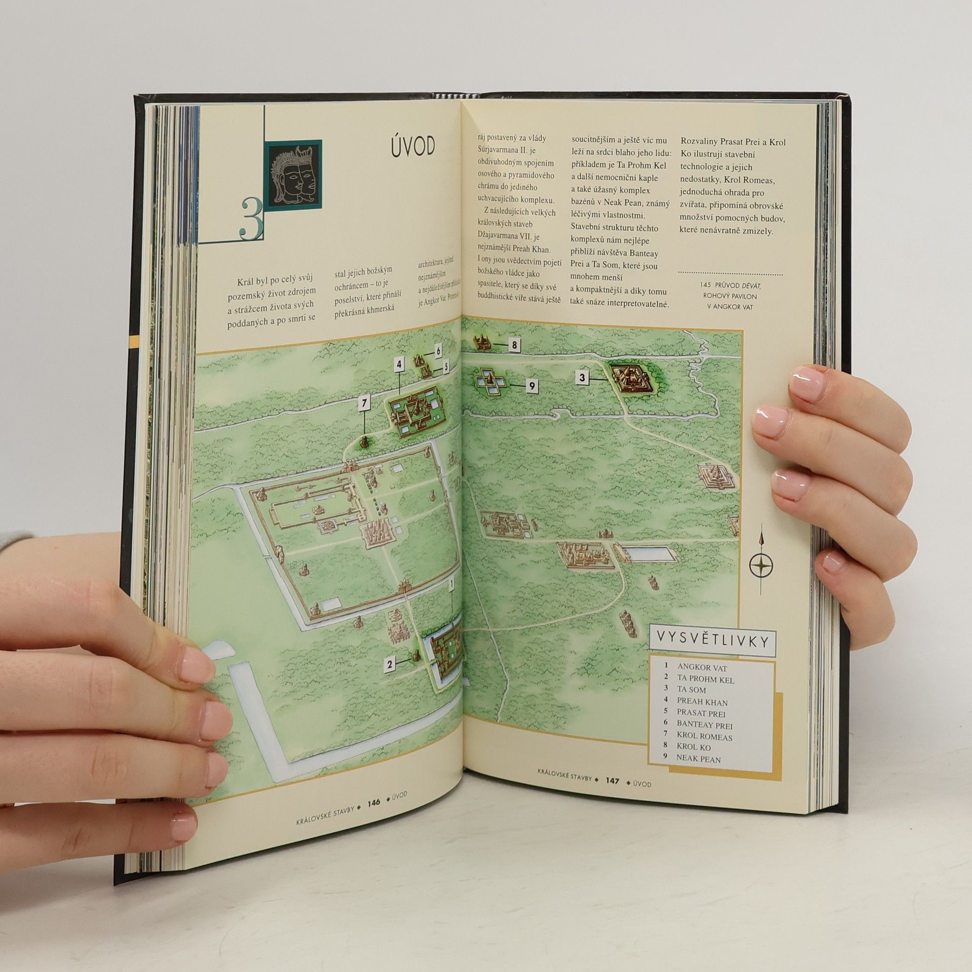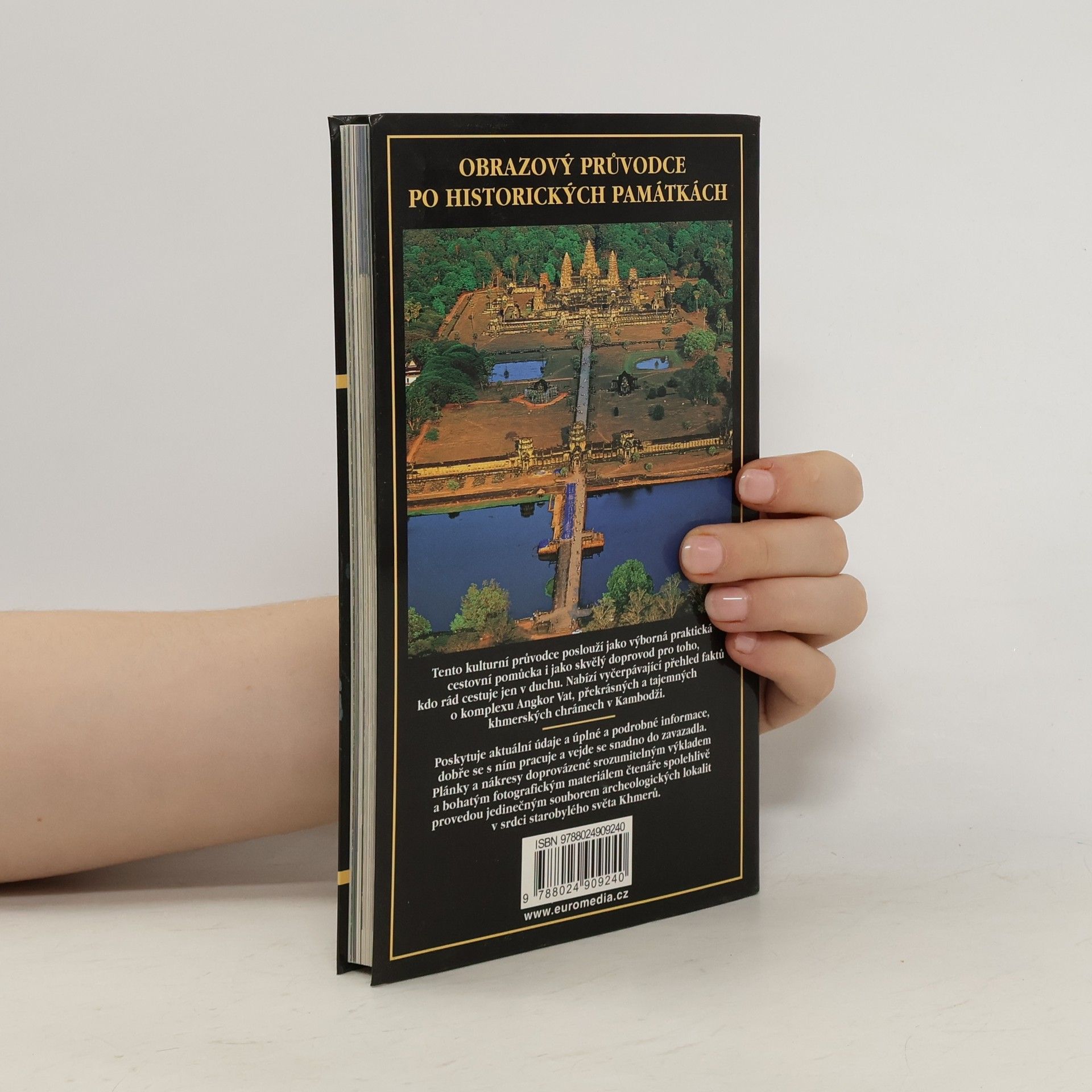 Průvodce starověkým hlavním městem říše Khmerů (9.-13.století), které je dnes vekým archeologickým parkem, nabízí aktuální obraz historických míst, uměleckých krás angkorských chrámů, vodních ploch a khmerského umění. Pro porozumění kultuře a umění khmerské civilizace je vždy popis památek zasazen do historického a kulturněhistorického kontextu. Průvodce chronologicky sleduje všechny éry Angoru a věnuje pozornost popisu a ikonografii khmerského chrámu, umění reliéfu, hinduistickým božstvům a archeologickému průzkumu Angkoru. Prohlídkové trasy sledují chronologii a vývoj hlavních typů svatyň (ranné období, vrcholné období reliéfu, královské stavby, srdce Angkoru, dědictví Khmerů) a uvádí i trasy za hranicemi Archeologického parku. Texty ilustrují barevné fotografie a plánky, nechybí slovníček, bibliografie a rejstřík.