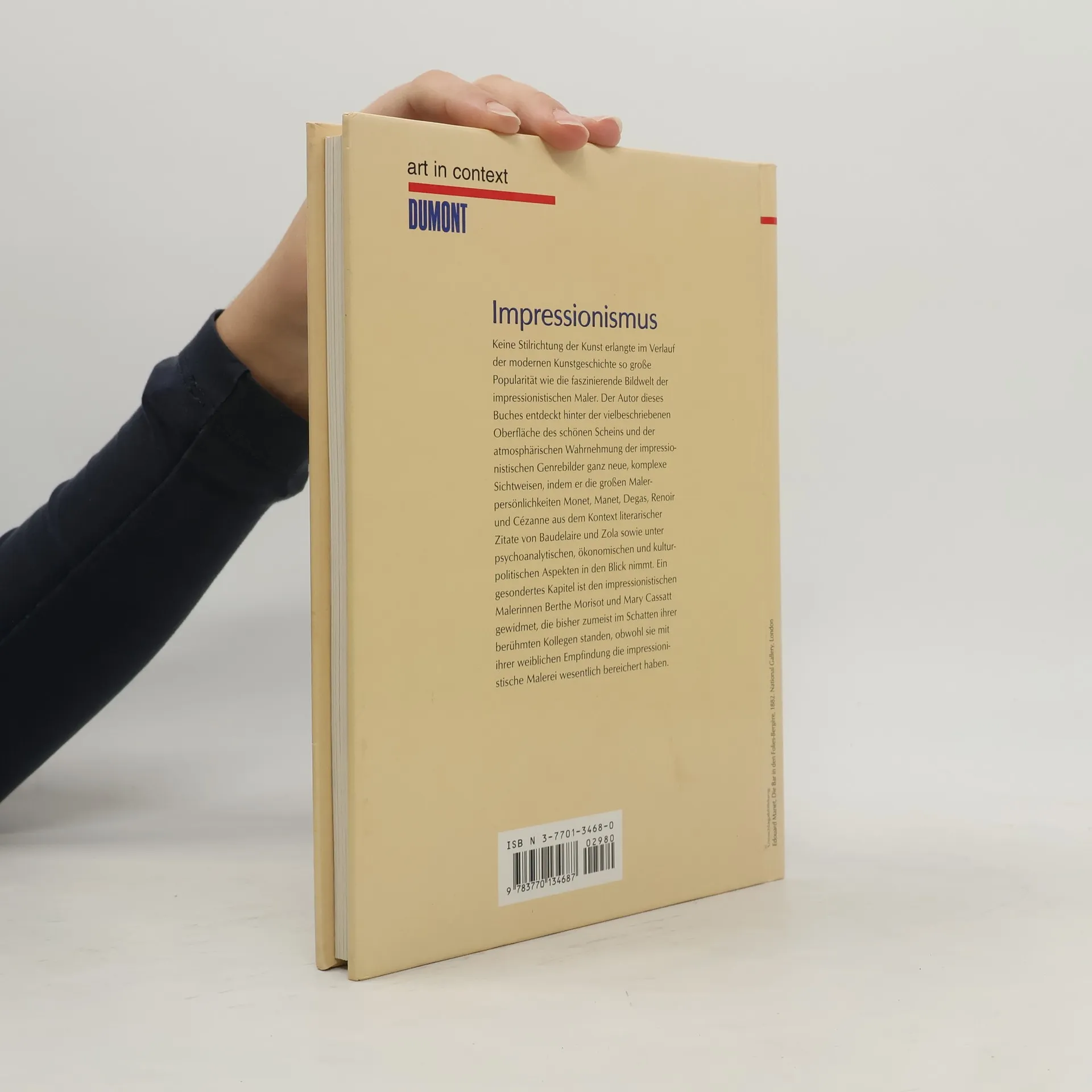 Auch Smith geht, wie vor ihm Paul O. Schulz ("Französische Impressionisten":BA 7/95), den Gründen für die anhaltende Popularität des französischenImpressionismus nach. Unter Einbeziehung der politischen, gesellschaftlichen undkulturellen Zusammenhänge und neuer kunsthistorischer Betrachtungsweisenuntersucht er die Malerei Manets, Monets, Pissarros, Cezannes, Berthe Morisotsund Mary Cassatts und macht deutlich, daß dem skizzenhaften Festhalten desersten, von Wissen und Information unbeeinflußten Eindrucks intensives Lernenvon Techniken vorausging und gründliches Nacharbeiten im Atelier folgte. Wegendes informativen Textes, auf dem der Schwerpunkt liegt, ideal neben dem o.a.Titel, der bessere Abbildungen enthält. (2 S)