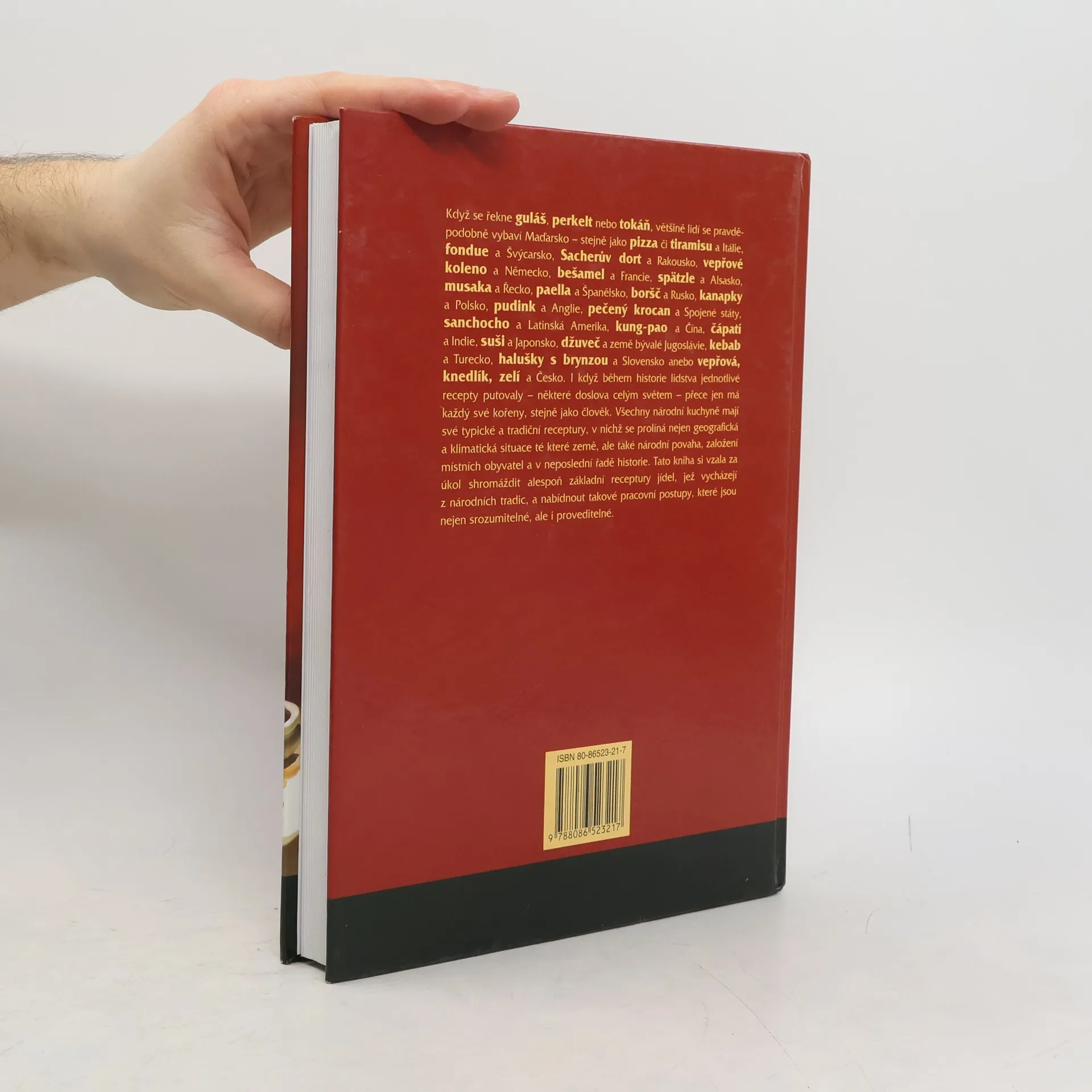 Tato pozoruhodná kuchařka má za cíl zmapovat tradiční pokrmy z celého světa, včetně české kuchyně. Přináší čtenáři nejen návody na přípravu jídel, ale informuje též, se kterými pokrmy se člověk setká při cestách do zahraničí i po vlastech českých, způsobu jejich konzumace, poučení o nápojích, které se k daným pokrmům mají podávat a mnoho dalších zajímavých rad a informací. Kniha je vybavena přehledným rejstříkem, aby bylo snadné hledání pokrmů jak abecedně, tak podle jednotlivých států. Recepty jsou doprovázeny barevnými fotografiemi.