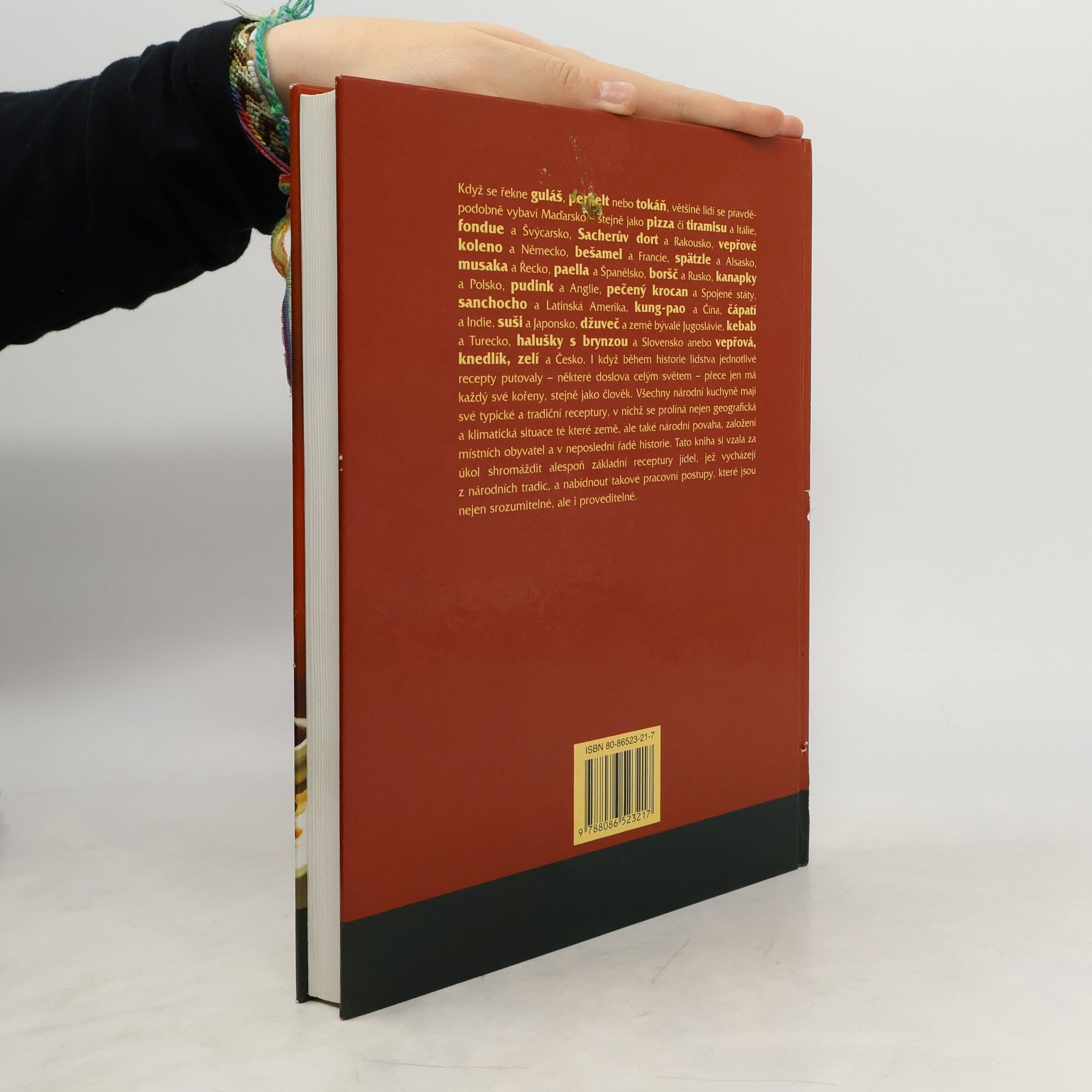 Tato pozoruhodná kuchařka má za cíl zmapovat tradiční pokrmy z celého světa, včetně české kuchyně. Přináší čtenáři nejen návody na přípravu jídel, ale informuje též, se kterými pokrmy se člověk setká při cestách do zahraničí i po vlastech českých, způsobu jejich konzumace, poučení o nápojích, které se k daným pokrmům mají podávat a mnoho dalších zajímavých rad a informací. Kniha je vybavena přehledným rejstříkem, aby bylo snadné hledání pokrmů jak abecedně, tak podle jednotlivých států. Recepty jsou doprovázeny barevnými fotografiemi.