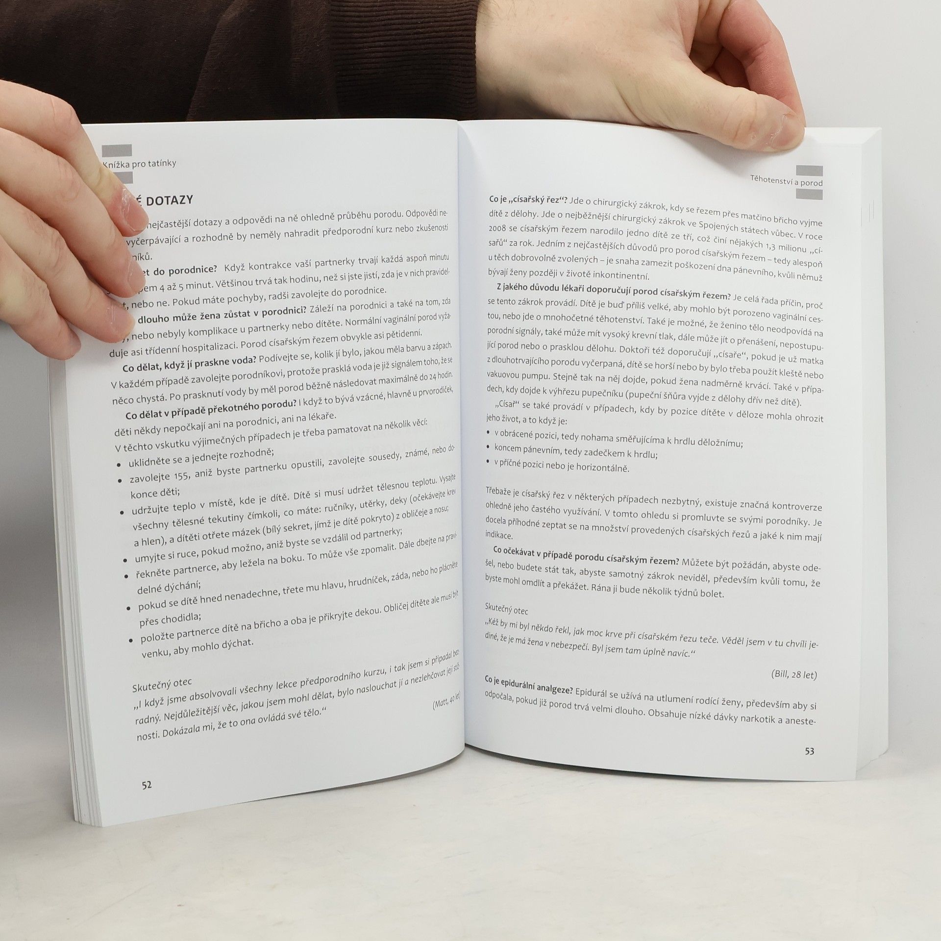 Těhotenství, porod a první tři roky života dítěte. V dnešní době prožívají nastávající otcové těhotenství své partnerky více než před lety a přítomnost otce u porodu se stala téměř samozřejmostí. Kniha přináší odpovědi na otázky, které v souvislosti s těhotenstvím, porodem a péčí o malé dítě muže napadají. Nabízí praktické rady typu, jak vyměnit plenku nebo čím nakrmit malé dítě, ale i zamyšlení nad emoční stránkou procesu vrůstání do otcovské role. Zabývá se i upevňováním vztahu s partnerkou, skloubením práce a rodiny, výchovnými styly, prosazováním disciplíny nebo úlohou hry v jednotlivých stadiích dítěte. John C. Carr je sociální pracovník a psychoterapeut s dvacetiletou praxí. Žije a pracuje v New Yorku. Je ženatý a má tři děti.