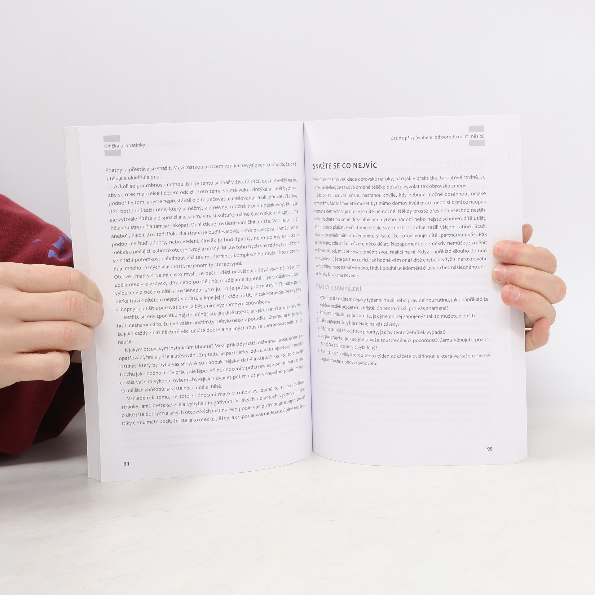 Těhotenství, porod a první tři roky života dítěte. V dnešní době prožívají nastávající otcové těhotenství své partnerky více než před lety a přítomnost otce u porodu se stala téměř samozřejmostí. Kniha přináší odpovědi na otázky, které v souvislosti s těhotenstvím, porodem a péčí o malé dítě muže napadají. Nabízí praktické rady typu, jak vyměnit plenku nebo čím nakrmit malé dítě, ale i zamyšlení nad emoční stránkou procesu vrůstání do otcovské role. Zabývá se i upevňováním vztahu s partnerkou, skloubením práce a rodiny, výchovnými styly, prosazováním disciplíny nebo úlohou hry v jednotlivých stadiích dítěte. John C. Carr je sociální pracovník a psychoterapeut s dvacetiletou praxí. Žije a pracuje v New Yorku. Je ženatý a má tři děti.