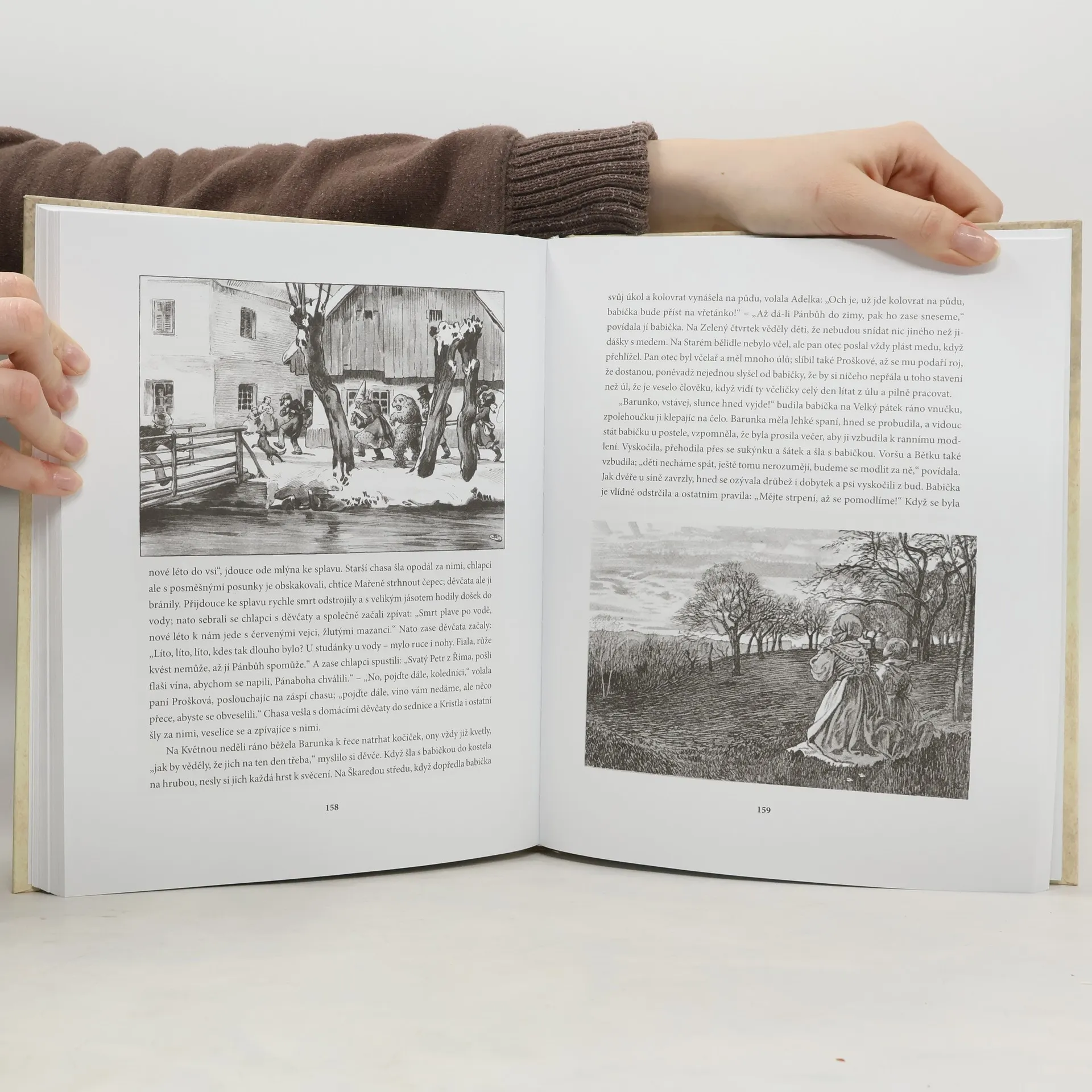 Kdybych štětcem mistrně vládnout znala, oslavila bych tě, milá babičko, jinak; ale nástin tento, perem kreslený - nevím, nevím, jak se komu zalíbí! Ty jsi ale vždy říkala: "Není na světě člověk ten, aby se zachoval lidem všem." Dost na tom, když se najde jen několik čtenářů, kteří o tobě s takovou oblibou čísti budou, s jakou já o tobě píšu. Zásadní dílo české literatury s ilustracemi Adolfa Kašpara.