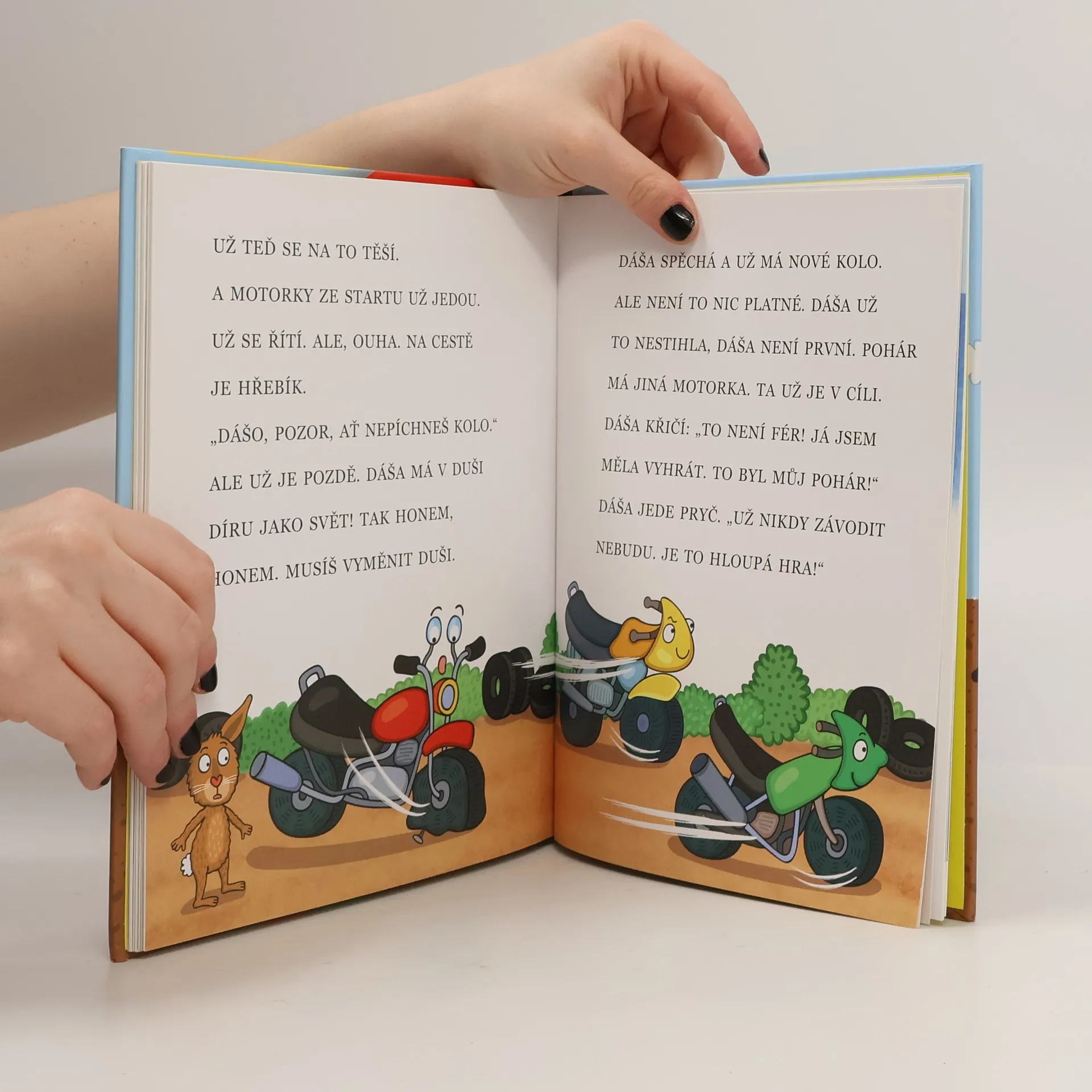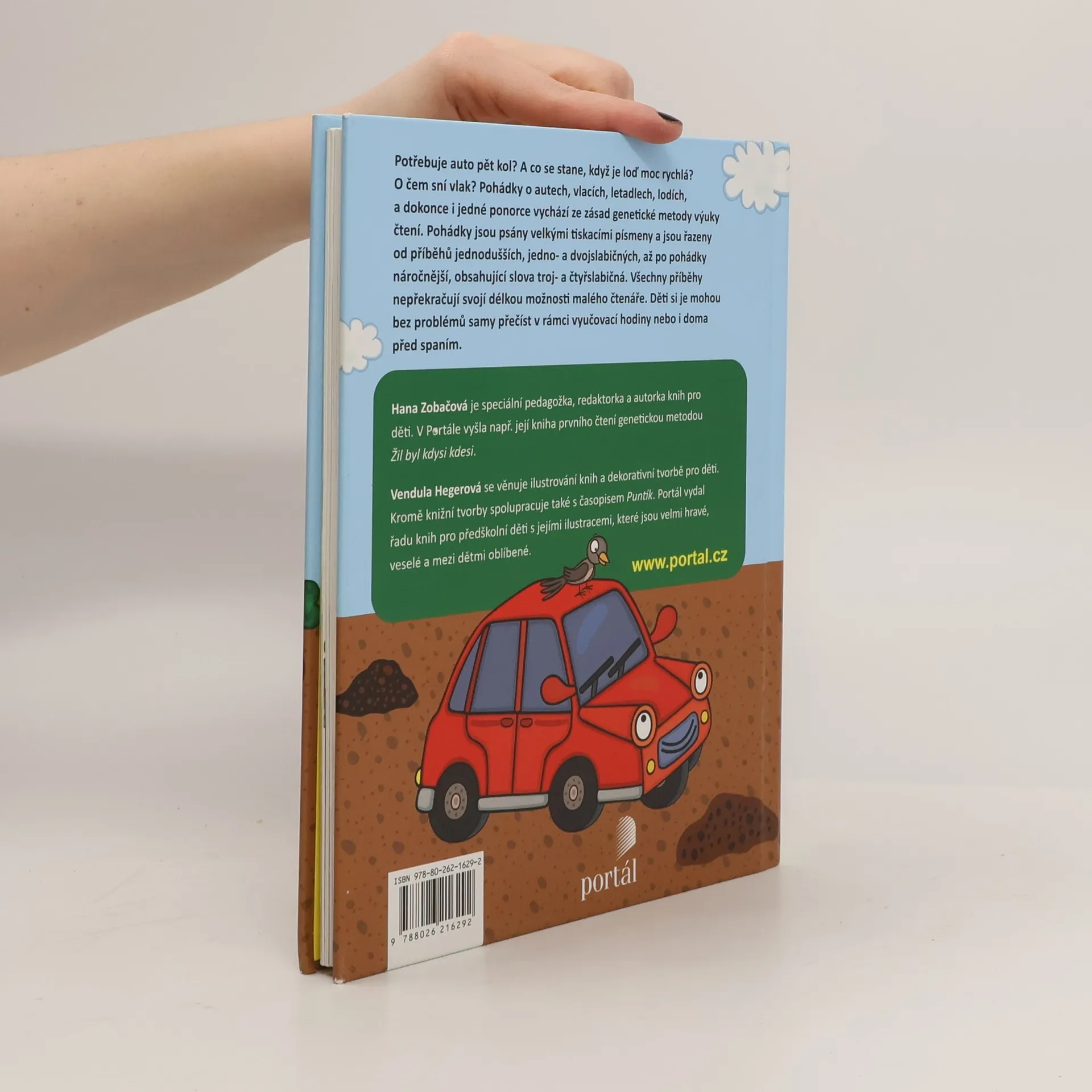 Potřebuje auto pět kol? A co se stane, když je loď moc rychlá? O čem sní vlak? Pohádky o autech, vlacích, letadlech, lodích a dokonce i jedné ponorce vychází ze zásad genetické metody výuky čtení. Pohádky jsou psány velkými tiskacími písmeny a jsou řazeny od příběhů jednodušších, jedno a dvojslabičných, až po pohádky náročnější, obsahující slova troj- a čtyřslabičná. Všechny příběhy nepřekračují svojí délkou možnosti malého čtenáře. Děti si je mohou bez problémů samy přečíst v rámci vyučovací hodiny nebo i doma před spaním.