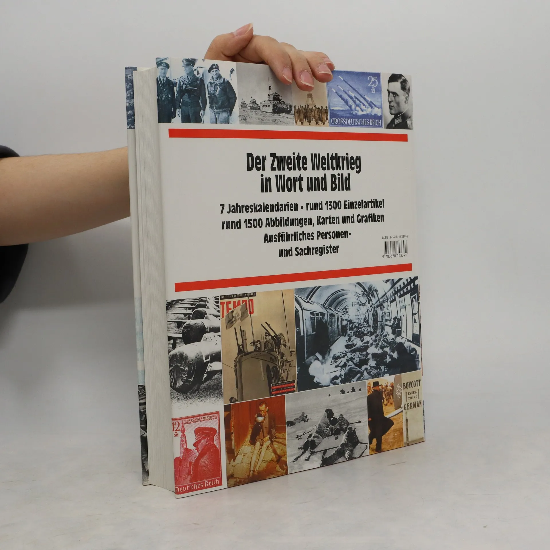 Wie kein anderes Ereignis im 20. Jahrhundert hat der Zweite Weltkrieg die Welt verändert. Nahezu jede Familie ist in der einen oder anderen Form betroffen. Ein einführender Beitrag von Professor Jost Dülffer erläutert die Vorgeschichte und Bedeutung des Zweiten Weltkrieges. Ausführliche Kalendarien dokumentieren das Kriegsgeschehen Jahr für Jahr. In rund 1300 Einzelartikeln werden die Etappen des Krieges dargestellt. Im bewährten Chronik-Stil zeigen zusätzliche Beiträge Hintergründe auf, historische Dokumente und Zitate von Zeitzeugen liefern ein eindrucksvolles Bild vom Erleben und von dem Leiden der Menschen. Tabellen, Grafiken und Karten runden die Sachinformationen ab. Rund 1500 Bilder vermitteln ein authentisches Bild vom Kriegsgeschehen, sie zeigen den Alltag der Menschen und die großen historischen Entscheidungen, die den Ausgang des Krieges beeinflußt haben