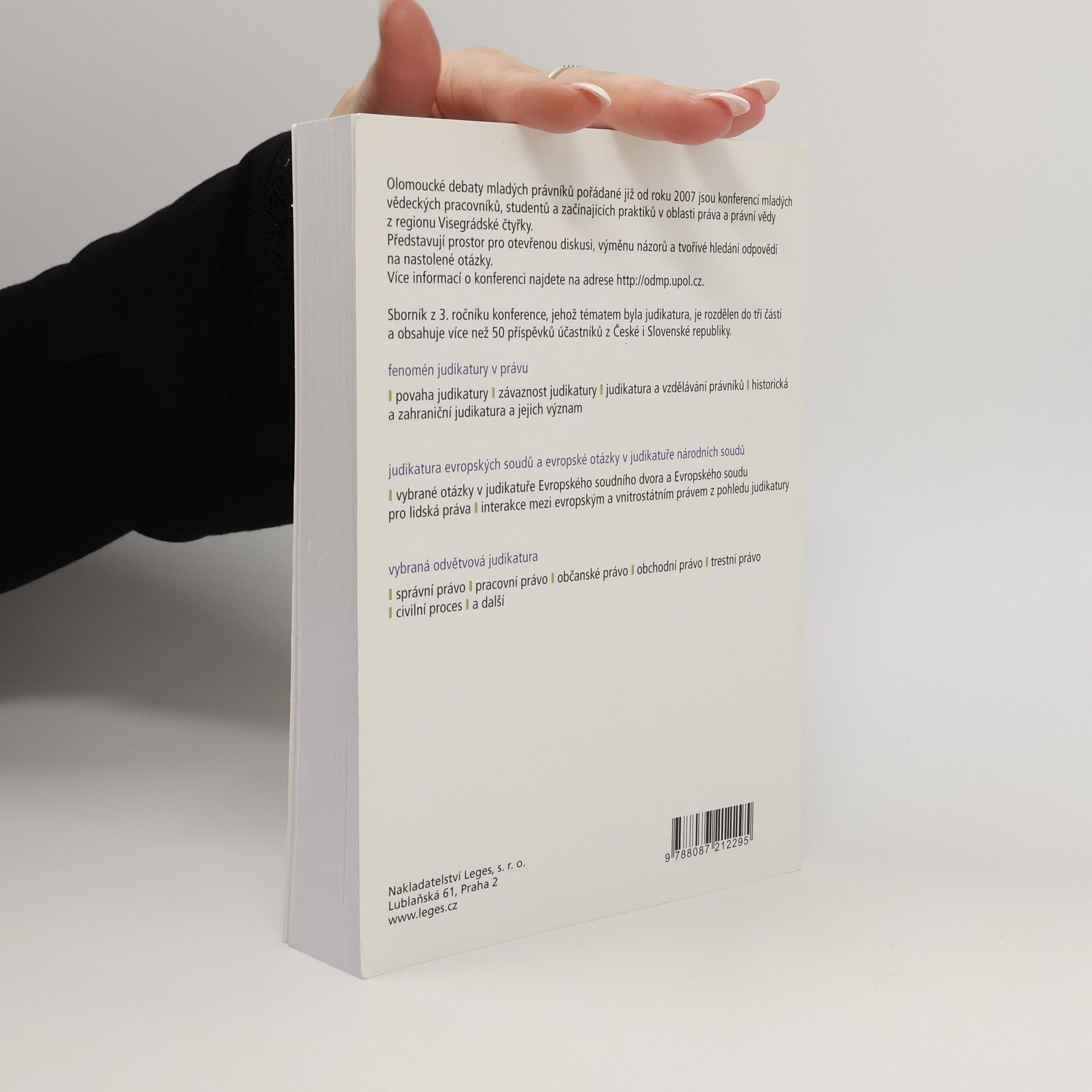 Olomoucké debaty mladých právníků pořádané již od roku 2007 jsou konferencí mladých vědeckých pracovníků, studentů a začínajících praktiků v oblasti práva a právní vědy z regionu Visegrádské čtyřky. Představují prostor pro otevřenou diskusi, výměnu názorů a tvořivé hledání odpovědí na nastolené otázky. Více informací o konferenci najdete na adrese http://odmp.upol.cz. Sborník z 3. ročníku konference, jehož stěžejním tématem byla judikatura, je rozdělen do tří částí: fenomén judikatury v právu, judikatura evropských soudů a evropské otázky v judikatuře národních soudů a vybraná odvětvová judikatura. Obsahuje více než 50 příspěvků od účastníků z České i Slovenské republiky.