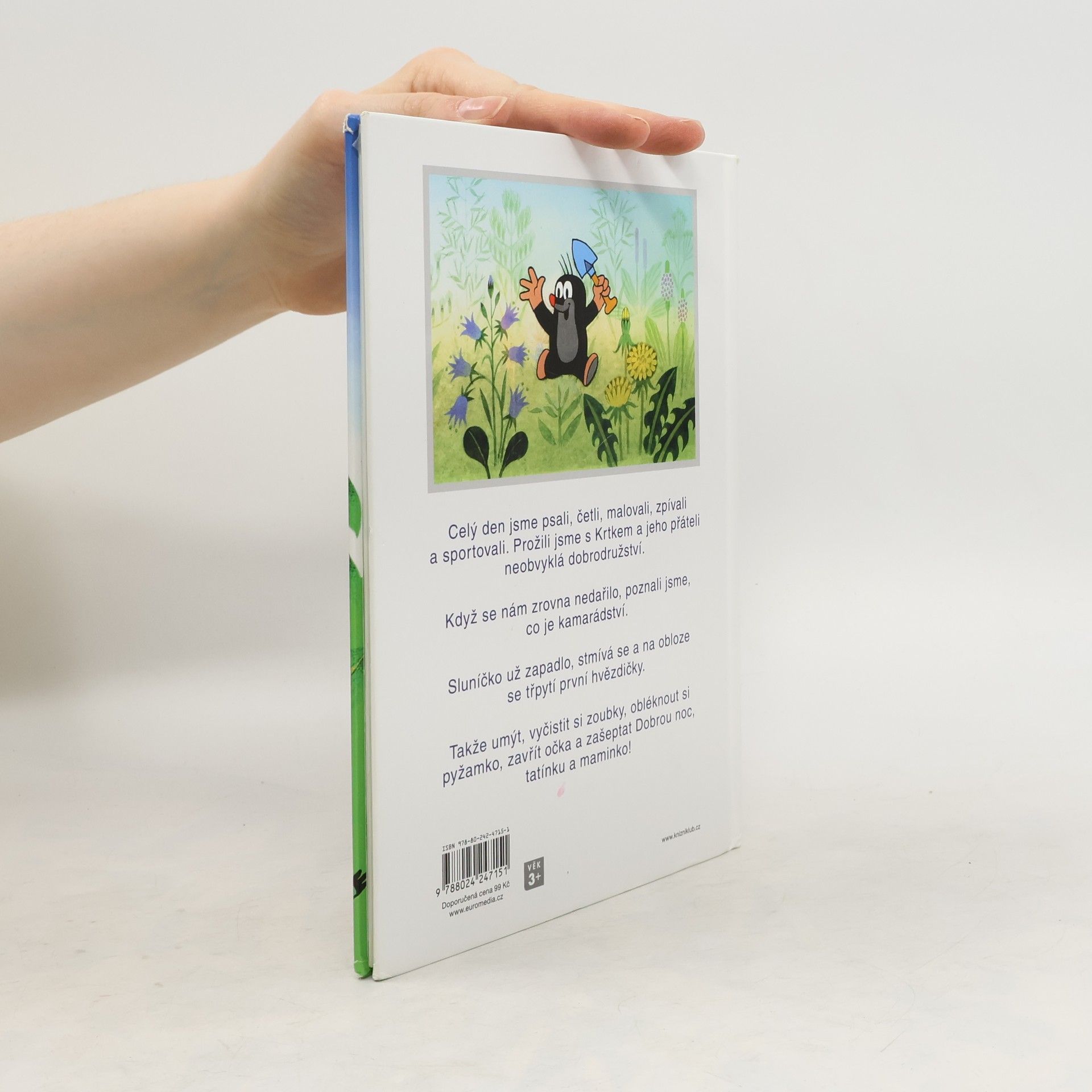 Dobrodružství s Krtkem a jeho kamarády myškou, žabkou, ježkem a zajíčkem nikdy nekončí. Uprostřed přírody prožívají své drobné i velké radosti a starosti tak blízké malým dětem - skotačí u vody, hrají si v lese, sportují, malují a hlavně vymýšlejí žertíky. Třináct vtipně ilustrovaných a knižně poprvé publikovaných příběhů doplňují půvabné verše našeho předního básníka.