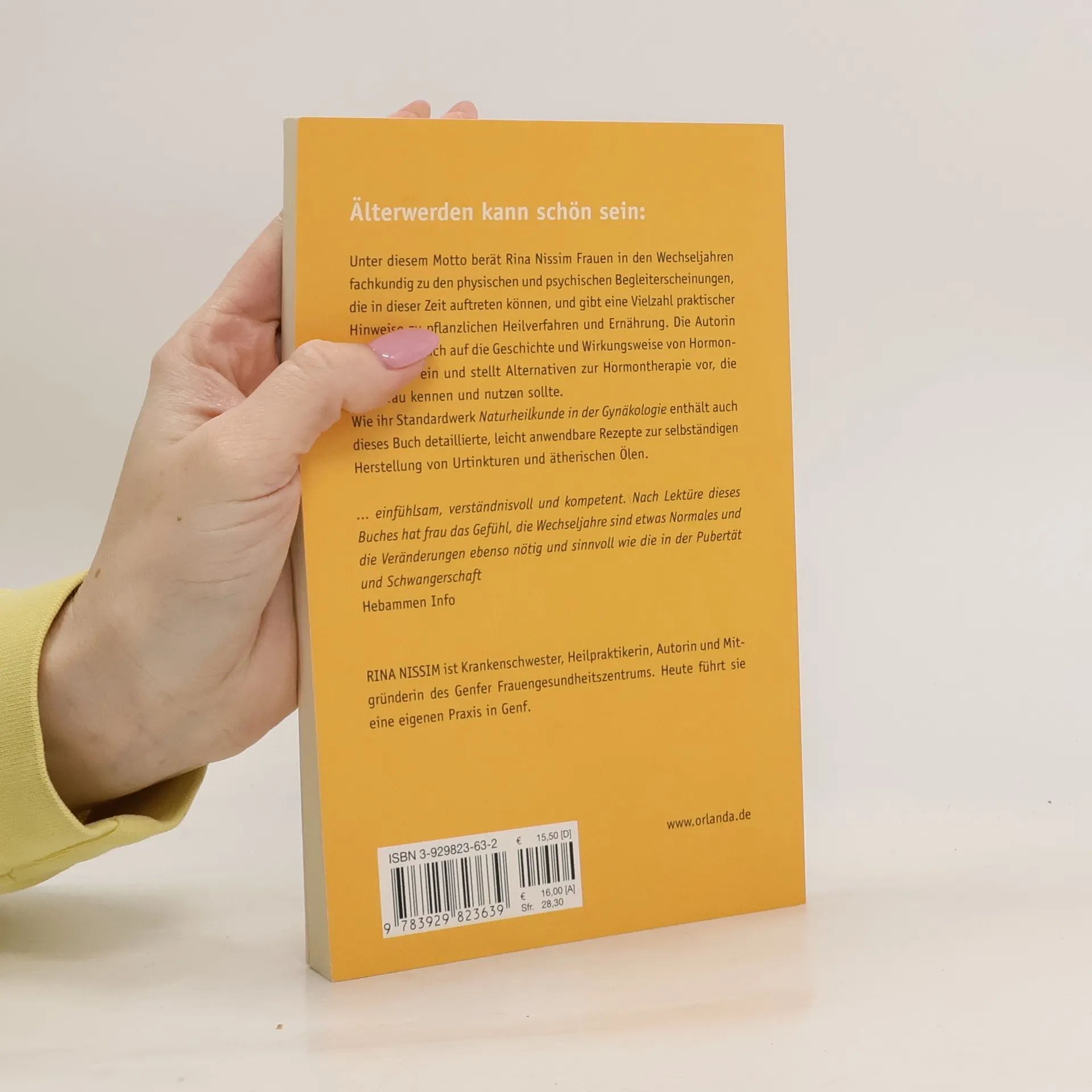 Die erfahrene Heilpraktikerin Rina Nissim berät Frauen fachkundig zu den körperlichen und seelischen Begleiterscheinungen, die in den Wechseljahren auftreten können. Dabei entlarvt sie so manche Befürchtung als Mythos. Die Autorin gibt praktische Hinweise zu pflanzlichen Alternativen zur Hormonersatztherapie und zeigt, wie jede Frau Beschwerden der Menopause vorbeugen und ein neues Körpergefühl entwickeln kann - auch durch die richtige Ernährung. Detaillierte, leicht anwendbare Rezepte zur selbstständigen Herstellung von Urtinkturen und ätherischen Ölen runden diesen kompakten Ratgeber ab.