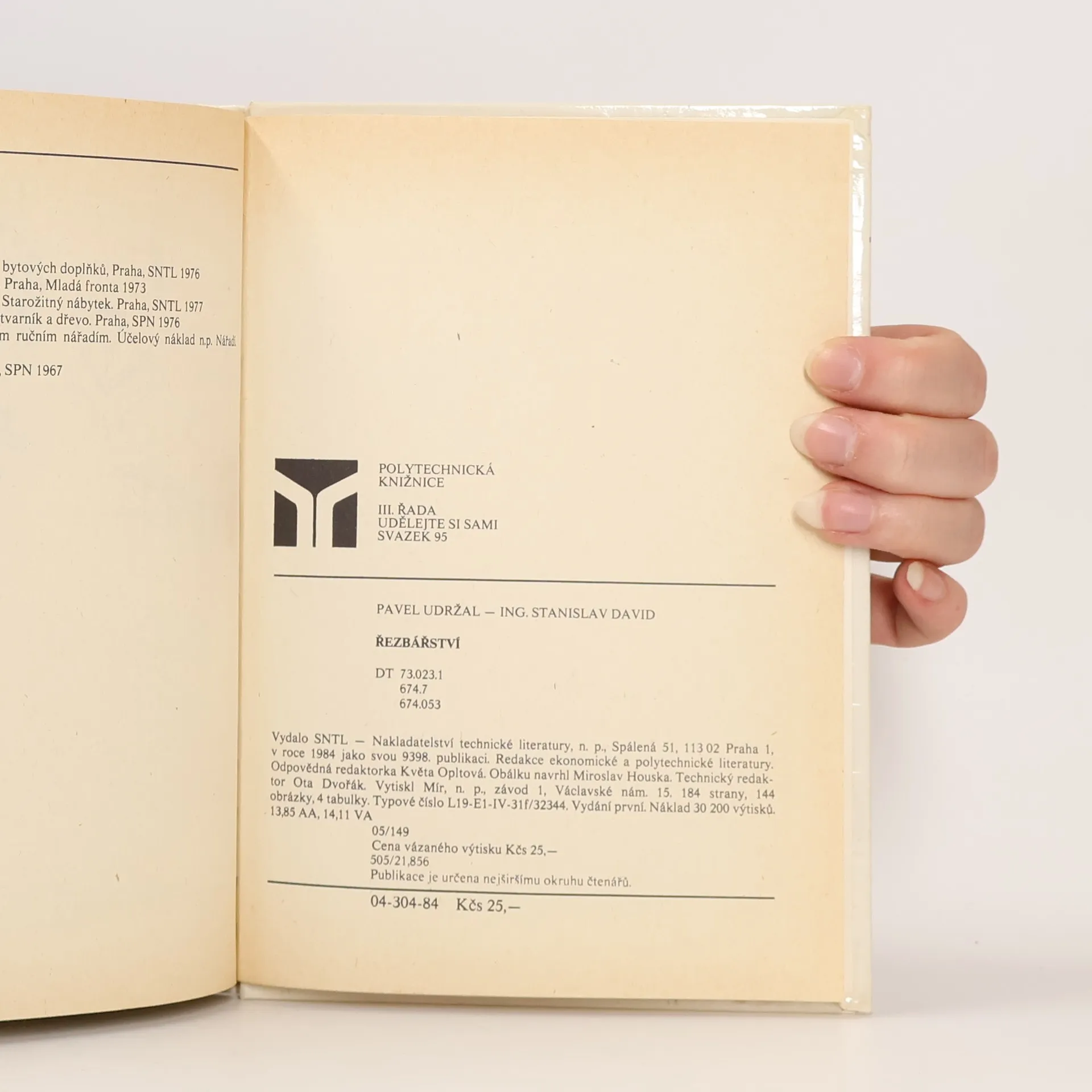 Přehledně informuje o materiálech a nástrojích používaných v řezbářství a o jejich údržbě. Seznamuje se základními řezbářskými technikami a postupy, soustružením dřeva, intarzováním a povrchovou úpravou hotových výrobků.Pracovní postupy jsou ukázány na příkladech výrobků.Text je doplněn názornými ilustracemi. Určeno nejširšímu okruhu čtenářů.