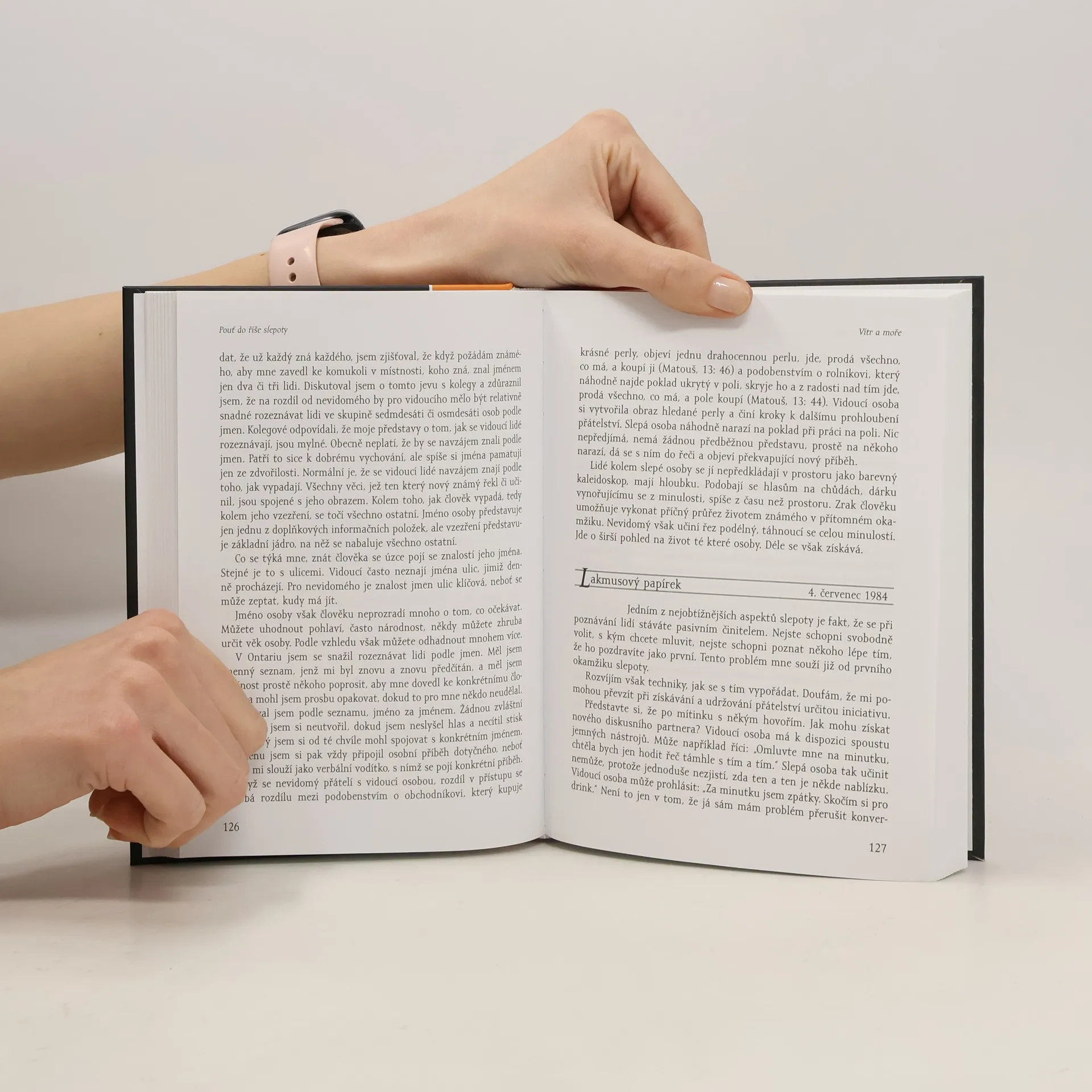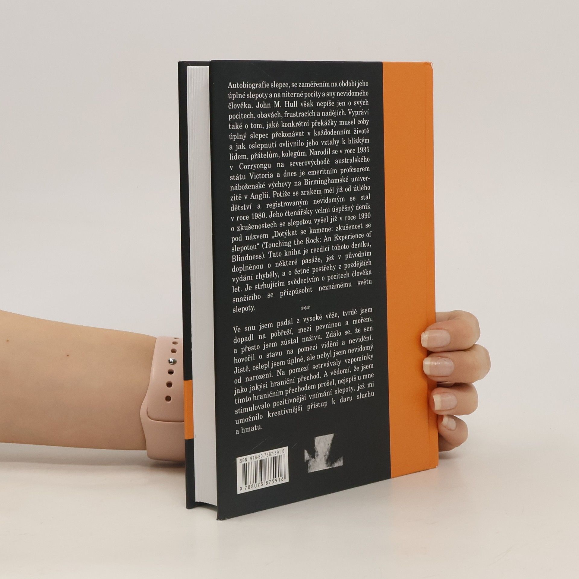 Autobiografie slepce, se zaměřením na období jeho úplné slepoty a na niterné pocity a sny nevidomého člověka. John M. Hull však nepíše jen o svých pocitech, obavách, frustracích a nadějích. Vypráví také o tom, jaké konkrétní překážky musel coby úplný slepec překonávat v každodenním životě a jak oslepnutí ovlivnilo jeho vztahy k blízkým lidem, přátelům, kolegům. Narodil se 22. dubna 1935 v Corryongu na severovýchodě australského státu Victoria a dnes je emeritním profesorem náboženské výchovy na Birminghamské univerzitě v Anglii. Potíže se zrakem měl již od útlého dětství a registrovaným nevidomým se stal v roce 1980. Jeho čtenářsky velmi úspěšný deník o zkušenostech se slepotou vyšel již v roce 1990 pod názvem „Dotýkat se kamene: zkušenost se slepotou“ (Touching the Rock: An Experience of Blindness). Tato kniha je reedicí tohoto deníku, doplněnou o některé pasáže, jež v původním vydání chyběly, a o četné postřehy z pozdějších let. Je strhujícím svědectvím o pocitech člověka snažícího se přizpůsobit neznámému světu slepoty.