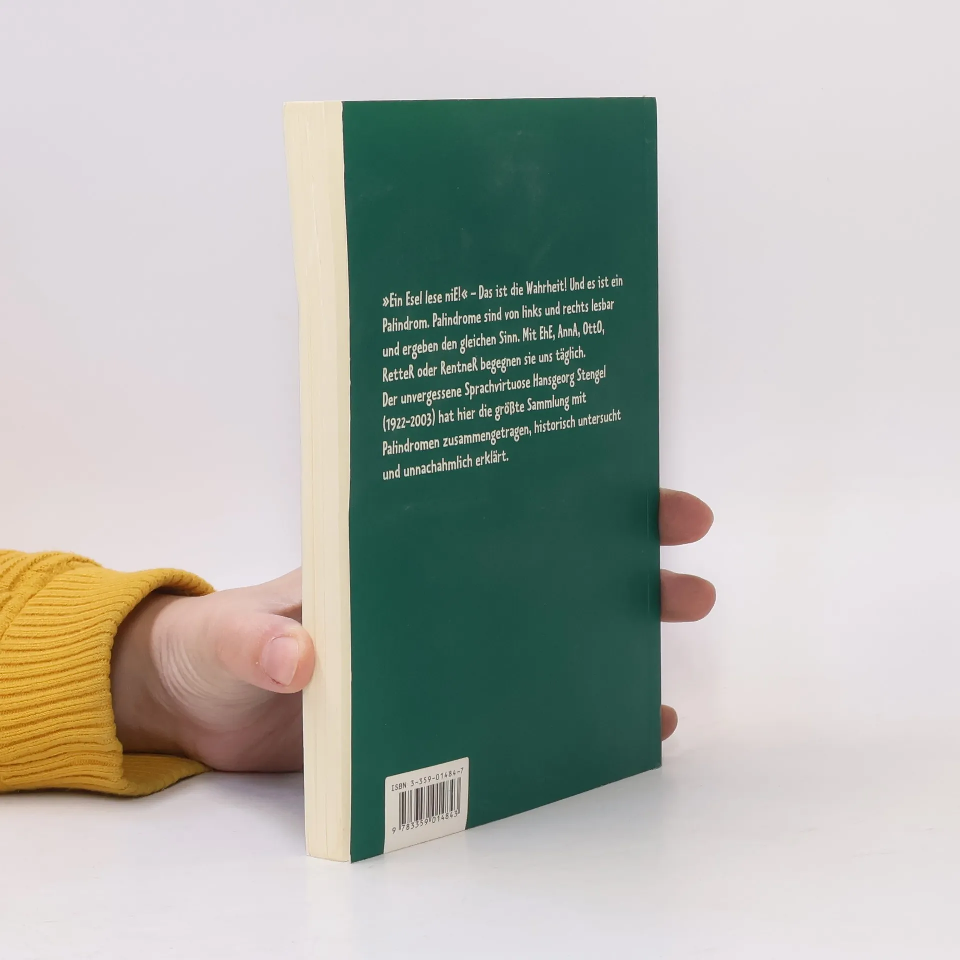 "Ein Esel lese niE!" - Das ist die Wahrheit! und es ist ein Palindrom. Palindrome sind von links und rechts lesbar und ergeben den gleichen Sinn. Mit EhE, AnnA, OttO, RetteR oder RentneR begegnen sie uns täglich. Der unvergessene Sprachvirtuose Hansgeorg Stengel hat hier die größte Sammlung mit Palindromen zusammengetragen, historisch untersucht und unnachahmlich erklärt.