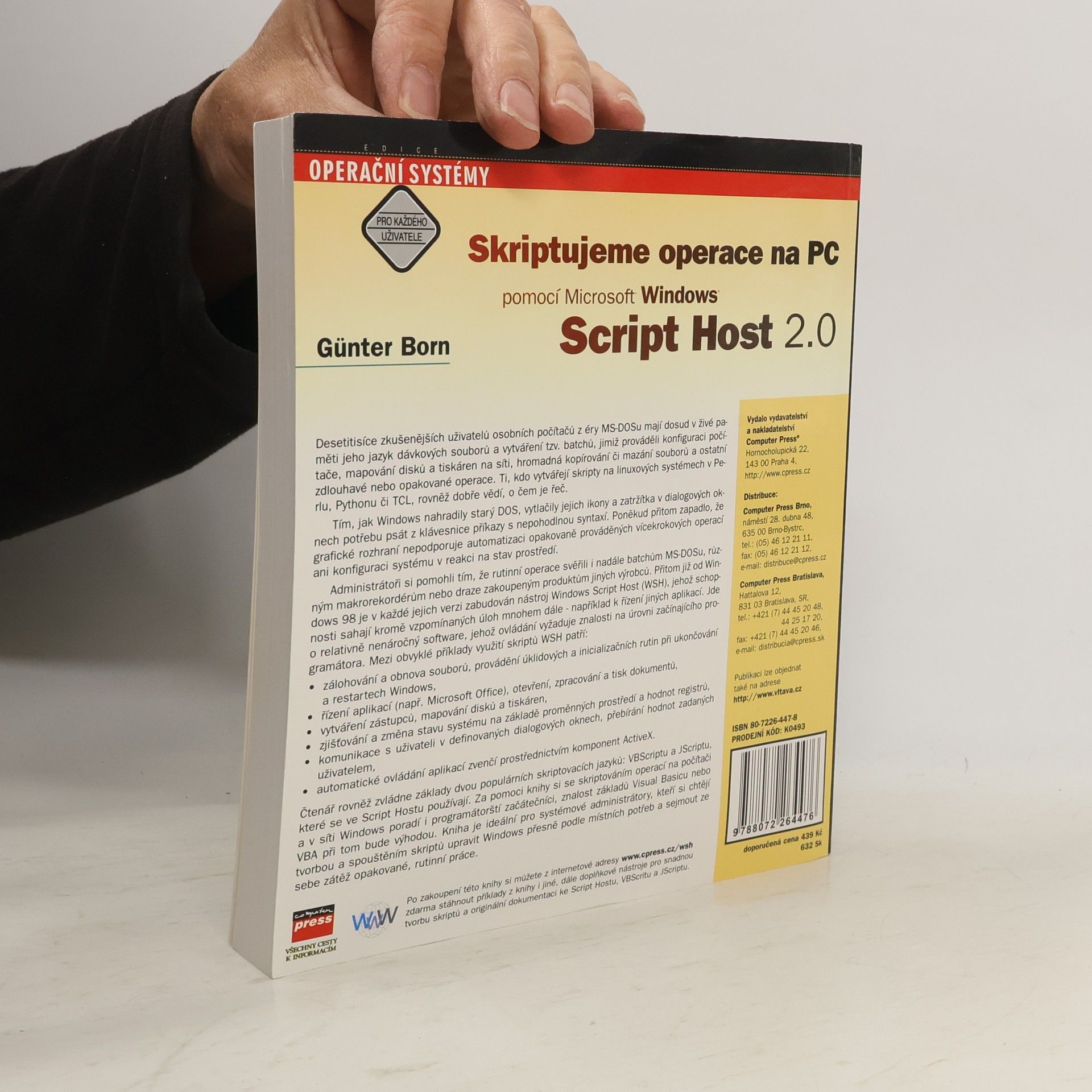 S přechodem na Windows se vytratila potřeba zadávat příkazy v DOSu, což však omezilo možnosti automatizace vícekrokových operací a konfiguraci systému. Administrátoři se uchýlili k používání batchů, makrorekordérů a drahých produktů třetích stran. Od Windows 98 je však k dispozici Windows Script Host (WSH), který nabízí mnohem širší možnosti, včetně řízení aplikací. Tento software, snadno ovladatelný pro začínající programátory, umožňuje například zálohování souborů, provádění úklidových rutin, řízení aplikací jako Microsoft Office, vytváření zástupců, mapování disků a tiskáren, a komunikaci s uživateli prostřednictvím dialogových oken. Kromě toho WSH umožňuje automatizaci aplikací pomocí komponent ActiveX. Čtenář se také seznámí se základy dvou populárních skriptovacích jazyků, VBScriptu a JScriptu. Kniha je určena pro začínající programátory a systémové administrátory, kteří chtějí přizpůsobit Windows svým potřebám a ulehčit si rutinní práci skriptováním. Znalost základů Visual Basicu nebo VBA je výhodou, ale není nezbytná.