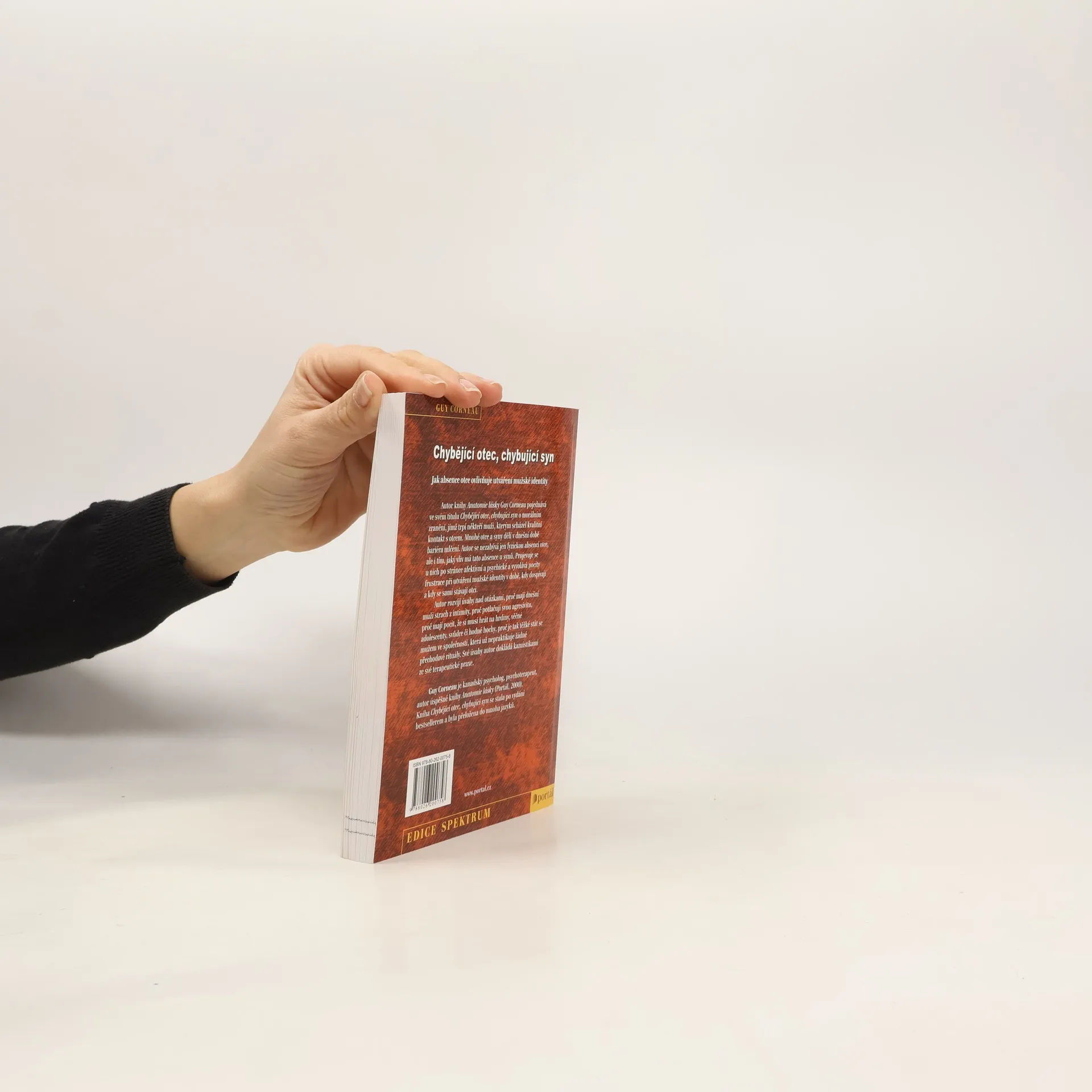 Jak absence otce ovlivňuje utváření mužské identity. Autor úspěšné knihy Anatomie lásky Guy Corneau pojednává v tomto titulu o morálním zranění, jímž trpí někteří muži, kterým scházel kvalitní kontakt s otcem. Fyzická absence otce se u nich projevuje po stránce afektivní a psychické a vyvolává určité nedostatky při utváření mužské identity ještě i v době, když tito synové dospěli, případně se sami stali otci. Autor vychází z vlastního života (zejména ze vztahu s vlastním otcem, resp. bez něj), z portrétů různých mužů a jejich příběhů a z příkladů z vlastní terapeutické praxe. Seznamuje čtenáře s tím, jak se tito muži jeví navenek, a jací doopravdy jsou uvnitř. Ukazuje důsledky, jež se projevily u synů, kteří vyrostli bez otce nebo jakoby bez otce. Ve své knize nabízí možnosti k lepšímu vzájemnému pochopení a souznění mezi mužem a ženou, rodiči a dětmi. V závěrečných kapitolách ukazuje, jak najít východiska a zbavovat se důsledků. Kniha Chybějící otec, chybující syn se stala po vydání bestsellerem, vychází v doplňovaných a revidovaných vydáních ve frankofonních zemích opakovaně a byla přeložena do desítky jazyků. Guy Corneau je kanadský psycholog, psychoterapeut, autor úspěšné knihy Anatomie lásky (Portál, 2000). V Kanadě i ve Francii vydal ještě několik úspěšných knižních titulů, pořádá přednášky, účastní se konferencí, vystupuje ve sdělovacích prostředcích.